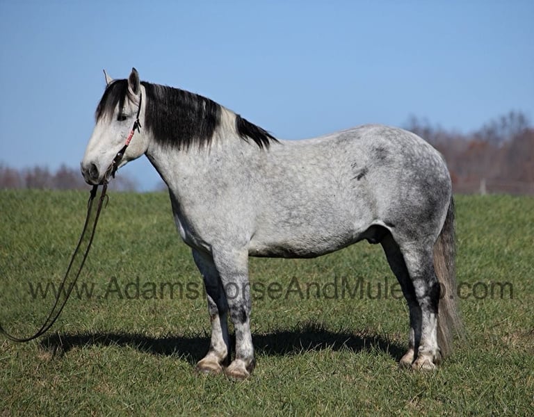 Go to visit our website for more pics and a video. AHAMC has been in the horse business and sold horses over the internet since 2005. We have a long track record of success with hundreds of happy customers. We work hard to match riders with the correct horses and specialize in beginner safe, family friendly horses that have been used and checked out by our family! Tiny is a magnificent looking 16H+, dapple grey Draftcross gelding that is weighing in around 1450lbs and has dapples the size of apples! He is 9 years old and is a sturdy built horse. Tiny is one that does a little bit of everything! He is very well harness broke, pulls all farm implements and carriages as well. He’s been ridden around the ranch, checked cows and rode fences. Tiny is a slow and laid back type of horse that will just ease along down the trails with no hesitation. He is a horse that the whole family will love and one that will help build everyone’s confidence levels! He has been camping in several states and has been ridden by all ages of beginners. When out on the ranch or going down the trails he will cross creeks, ditches, logs and navigate rough rocky areas. He is safe in traffic safe whether that be trucks or cars. He has a nice jog, his lope is smooth as well and he lopes nice circles! He has been exposed to all kinds of wildlife such as deer or turkey. If you are a big ol feller, a lil bitty lady or a combination of each… Tiny will take care of you! Feel free to call Eric 606-308-2461 with any questions!