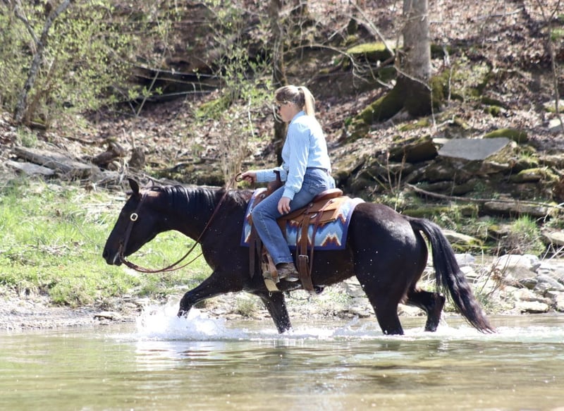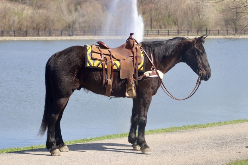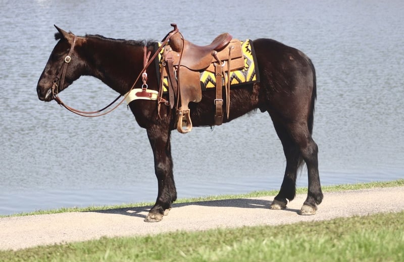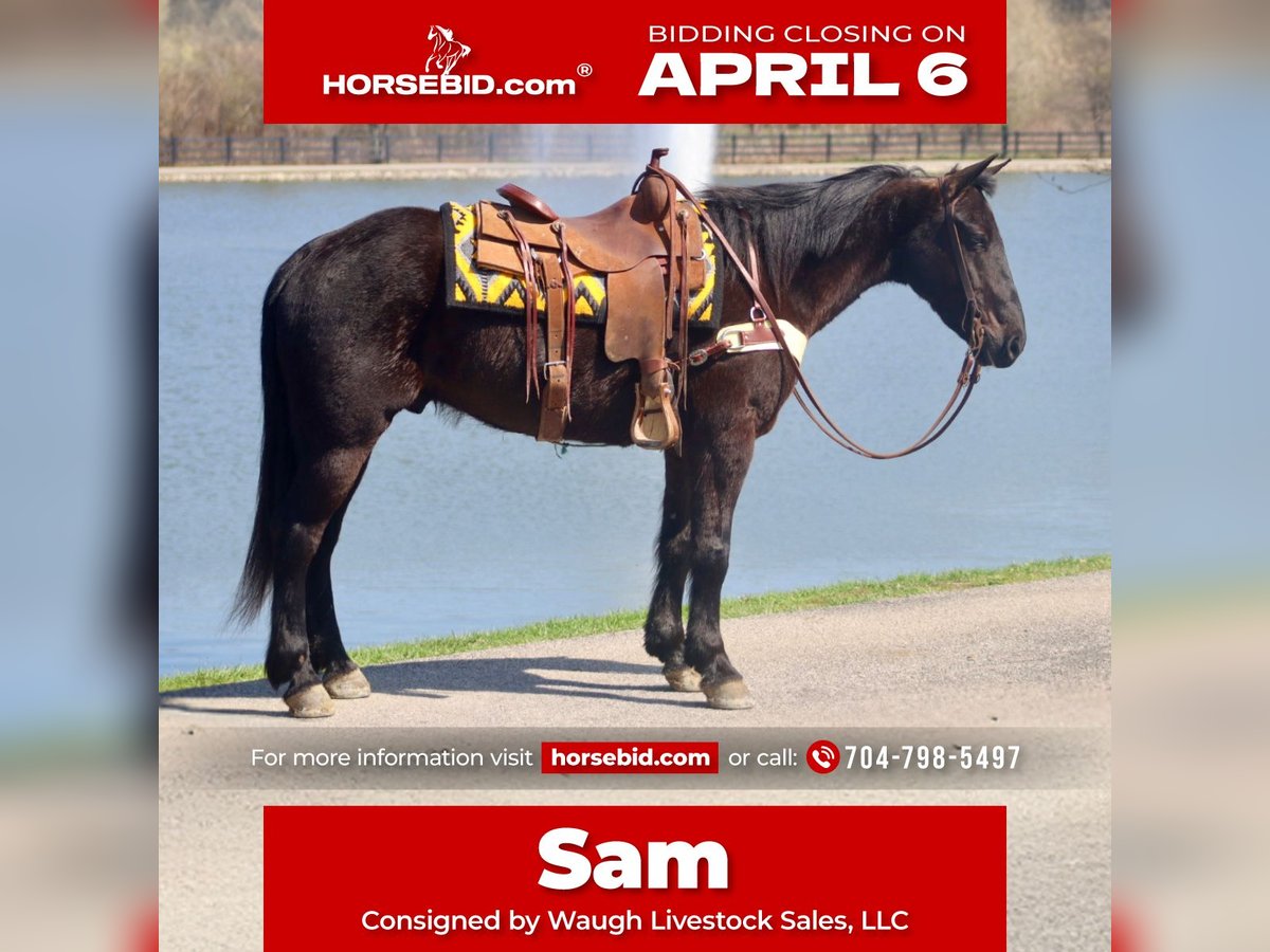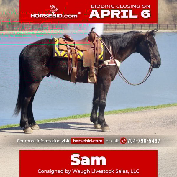 🌟𝑨𝒑𝒓𝒊𝒍 𝐀𝐋𝐋 𝐒𝐓𝐀𝐑 𝐋𝐈𝐍𝐄𝐔𝐏🌟 Happening now thru MONDAY | APRIL 6th - Available EXCLUSIVELY on HorseBid's website! For more details and to register visit: www.Horsebid.com CONSIGNOR CONTACT: Waugh Livestock Sales, LLC 704-798-5497 LOCATION: Mayslick, KY BREED: Percheron/QH REGISTERED: No COLOR: Black HEIGHT: 15.2 AGE: 5 GENDER: Gelding Sam is a 5 year old, 15.2 hand Percheron/QH cross gelding. When I say there aren’t enough good things to say about Sam, I truly mean it. He is a gem of an all around gelding. Undersaddle, Sam has smooth and comfortable gaits. He has a comfortable walk, jog, and lope. He rides softly in the bridle, and it overall light and responsive off your aids. When you put him into a gait, he stays there nicely and you don’t have to keep pushing him to stay there. He picks up both leads well and works off the seat and legs. I have had many different levels of riders on Sam and he is forgiving of mistakes and adapts to the level of rider on his back. He is excellent and trustworthy on the trails. He crosses obstacles with ease. Whether you’re riding in the woods or along the busy streets, Sam keeps his cool and his mind on business. If you don’t feel like saddling up, Sam is happy to go out for a bareback ride as well. Aside from the enjoyable and relaxing riding, we have used Sam for various jobs as well. We check cows and calves on him regularly. We have also moved them from pasture to pasture and up to the sorting pens. He is also helpful in starting colts. We have ponied colts off of him and used him start colts in the roundpen. In addition to riding, Sam is a superb driving horse. He drives single and double and has a lot of experience in the harness. We have only hooked him single ourselves, but he is traffic safe and is comfortable driving around the farm or in the streets. He stands well to harness and hook, one person can safely hook and unhook him. Sam has excellent ground manners and enjoys being around people. He stands to groom and saddle, ties quietly, loads well, and handles his feet nicely. If you’re looking for a safe and reliable horse to add to your family, Sam definitely fits that bill. He has passed every test we have done with him with flying colors. Whether we saddle up to go work or head to the park for a Sunday afternoon cookout, Sam is happy to go along and enjoy the day with you. For more information call or text Sammi at 704.798.5497