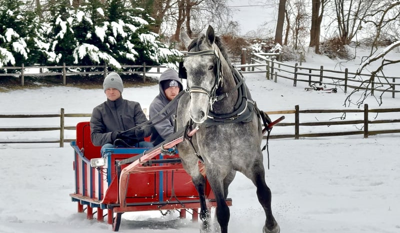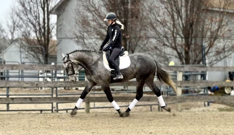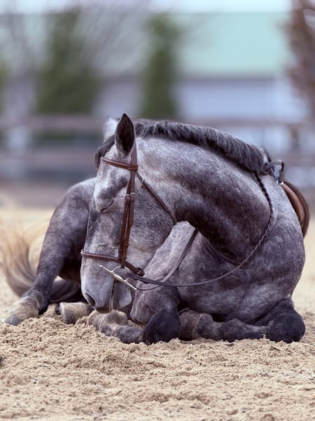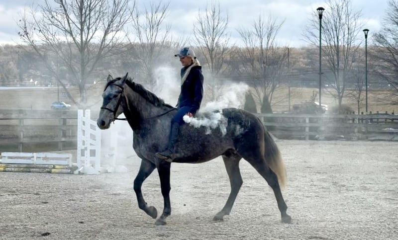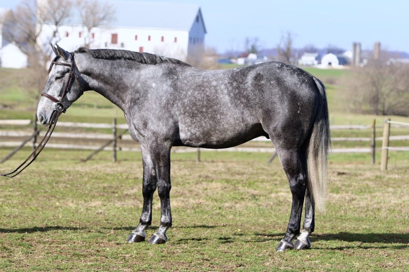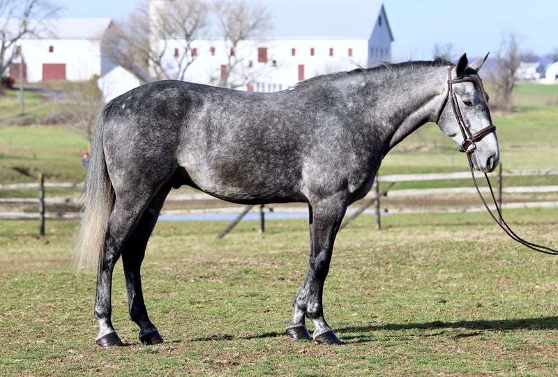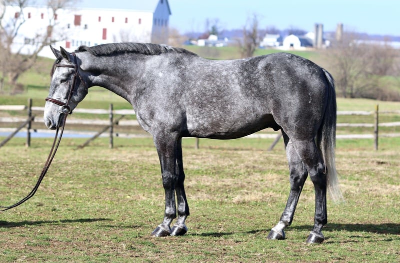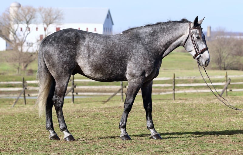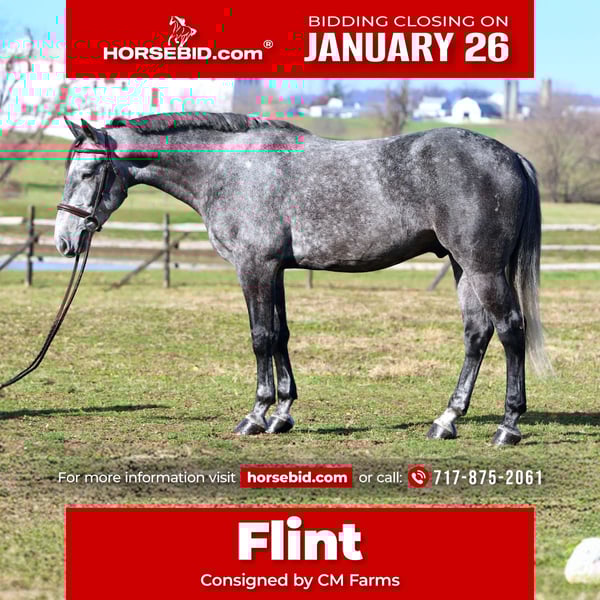 𝐉𝐀𝐍𝐔𝐀𝐑𝐘 ⭐️𝑨𝒍𝒍 𝑺𝒕𝒂𝒓 𝑳𝒊𝒏𝒆𝒖𝒑⭐️ Happening now thru MONDAY | JANUARY 26th - Available EXCLUSIVELY on HorseBid's website! For more details and to register visit: www.Horsebid.com CONSIGNOR CONTACT: CM Farms 717-875-2061 LOCATION: Gap, PA BREED: Perch/QH REGISTERED: No REGISTERED NAME: Flint COLOR: Grey HEIGHT: 15.3-16 AGE: 5 GENDER: Gelding Meet Flint! This gelding is a 5 year old, 15.3-16hh, Perch/QHx, gelding. He is the most gorgeous steel grey color, with a lighter athletic build that’s put together correct. He rides Western, English and Bareback, he’s broke to drive, and he even lays down on command! He is sensible, safe, and incredibly fun to have in the barn. On the ground, Flint is personable and so sweet. He has excellent ground manners, and will stand to groom, tack up, bathe or simply to fuss over. He’s a people person with a quiet personality and a gentle way about him. He has done lots of ground work, and his manners show it! He loads in and out of the trailer quietly, he acts the same off property, and he’s behaved in his stall. He gets along with all the other horses, and loves to play with the other young geldings. This gelding is easy to have in the barn, and easy to work with. Under saddle, Flint has the basics down in the ring. He walk trot and canters both ways, and he’s learning balance and to use himself properly. He moves off leg, and he is extremely light and easy through the hand. He has great brakes just off your seat or a “whoa”. He’s been a rewarding one to bring along, one you can really see the progress as it’s happening! He’s smart, a quick learner, and always willing to please. He has learned to be adjustable in the walk and trot, and he’s learning quickly at the canter. He’s not the spooky type, or one to have a big reaction to anything. He’s happy to chill and mosey around on a loose rein, or he’ll turn on his good work ethic- and he really seems to enjoy his job. He’s going to make someone an incredible horse, and we could see him excelling in any direction! On the trail Flint is a steady packer. He’s down to lead or follow, and he has a forward thinking walk with happy ears forward the whole time. He’ll babysit the amateurs, or pack the husband, and he’s very safe and sensible. He’s been out on hunter paces and didn’t get worked up at the busy environment. He’s always cool, calm, and collected. He has a cute jump on him, that will only continue to get better with age! He’s honest, straightforward, and an easy ride. He’s been desensitized to everything from tarps, flags, smoke, traffic, equipment, to all the wildlife you run into! Under harness, Flint has had an excellent start. He’s responsive to voice commands, and he’s always a solid citizen. He drives both single and double, and he has even pulled the sleigh! He is stunning under harness, and if someone wants to continue him that direction he will not disappoint! If you want a nice young prospect, (one that’s easy and rewarding to work with) to continue bringing along- Flint is your guy!