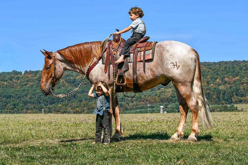 ⚜️ 𝓗𝓮𝓻𝓲𝓽𝓪𝓰𝓮 𝐖𝐢𝐧𝐭𝐞𝐫 𝓒𝓵𝓪𝓼𝓼𝓲𝓬⚜️ Happening now thru MONDAY | DECEMBER 29th - Available EXCLUSIVELY on HorseBid's website! For more details and to register visit: www.Horsebid.com CONSIGNOR CONTACT: Circle P Performance Horses LLC 717-688-9479 LOCATION: Littlestown, PA BREED: Percheron Quarter Horse Cross REGISTERED: No COLOR: Red Roan HEIGHT: 16.1 AGE: 4 GENDER: Gelding ✨ 𝐒𝐚𝐟𝐞, 𝐒𝐭𝐮𝐧𝐧𝐢𝐧𝐠 & 𝐓𝐚𝐥𝐞𝐧𝐭𝐞𝐝! ✨ “BamBam” is a breathtaking 4 year old, 16.1 hand gelding. BamBam has had a phenomenal upbringing, he rides English and western, works around the ranch, hacks out on the trails and he’s started in the cross country field! He puts his heart in every job and strives to give his rider 110%. The opportunities are limitless for this gelding! Under saddle, BamBam is smooth, balanced and correct. He picks up both leads, has comfortable transitions and will take a jump with ease! He’s brave over fences and has the scope to jump higher! Bam has the confirmation, brains and versatility to excel in cross country, fox hunting, dressage, equitation etc! He is not the type of horse that needs to be in a program. Absolutely no prep - he can sit for a month and go straight to work! I have let the kids jump on and play with him in the arena - he is so patient, forgiving, and quiet minded. He would be perfect for a youth rider or adult amature working with a trainer to gain confidence and grow to the next level! He’s a saint! If English isn’t your thing, he also rides western and will put in a honest days work on the ranch! Bam has been used to check fences, gather and move cattle and works good alongside dogs! On the trails, BamBam is as safe, reliable and confident as they come! He will cross anything you put in front of him - bridges, water, deadfall, railroad tracks, you name it! He has been to town and is traffic safe! He’s acclimated to the craziness of daily life around the farm and doesn’t mind loud noises, trucks, trailers, equiptment, ATVs/SXSs, bicycles, scooters, tarps, flags, balls, etc. He is use to kids and dogs running around the barn and pays no mind. At home, BamBam is everyone’s favorite! He is an easy keeper with no maintenance or quirks. He will stand all day in the barn to be groomed and loved on. He is good for all things - bathing, clipping, tacking up, farrier, vet, dentist, loading, hauling and he is always the same horse off farm as he is at home! I normally keep him shod when in full work, but with coming into winter, Bam is currently barefoot. He’s got big, strong, hardy feet and gets nothing but compliments from my farrier! He is use to being turned out in a mixed herd with other geldings and mares, mules and minis - he gets along with everyone! I never have to worry about catching him - he can be at the very far end of the field and if he hears me whistle he comes galloping to the gate! BamBam has the absolute best personality. He is so incredibly sweet and gentle, and he loves spending time with his people. He never misses an opportunity for attention as he’s always right there in your pocket! He has an “old soul” Yellow Lab demeanor that is priceless in my mind. BamBam has captured my heart and I want to see him land in the BEST home! He is a true, honest, once in a lifetime gelding. Please feel free to reach out with any questions or to schedule a visit to come meet him!