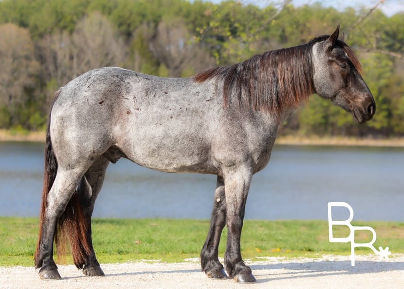 ONLINE AUCTION Place your bids at www.PlatinumEquineAuction.com Starting Bid $3500 Auction ends May 11th, 2025 Need a new saddle? Check out White Rock Saddles on our website or Facebook! This beautiful Blue Roan gelding may just be the best draft cross we have ever had through our program! Ernie is a 16hh, 5 year old with all black points and he is one sharp looking guy! He is a barn favorite here and sure to be a barn favorite in your barn. Gorgeous color with an exceptional personality and rides like an old soul. This is the type of horse for your grandma, children and anyone looking for a super honest/bombproof ride. Easy to catch. Ernie stands tied for saddling, grooming, and at the mounting block. Super pushbutton ride! If you can sit on top of him you can ride him. Absolutely no funny business and comes out to work every day you ask. Leave him sit for weeks he will be the same quiet easy going horse. Exceptional trail horse, nothing rattles him. Lead the pack or stay in the back he does not care. Easy gaits and rides on a loose rein. Started over fences and very willing. All around gelding for the entire family to enjoy. Has been in the program and Beaver Ranch and stand behind him 150%. Check out our video highlighting everything from saddling, loading, trail riding, obstacles, jumping and Walk, Jog, Lope. Sells with UTD basic PPE, Coggins, Health Papers, Vaccinations, Dentist, Farrier. We HIGHLY encourage customers to come try our horses in person before buying to ensure an excellent fit between horse and rider. We are so confident that you will love our horses that we will personally cover all travel and lodging expenses for the winning bidder if they come try before they buy/bid. While here you are welcome to try our horse any where/way that you like, on the trails, out on the ranch, in the arena or working cattle. Anyone who comes to try out horses in person will receive a 5 day money back guarantee from time the horse arrives in your possession. Also included will be the option to receive a 1 hour riding lesson with Beaver Ranch to better learn how to communicate with your new horse. NOW AVAILABLE!- Facetime/Skype video call meet and greet with Ernie. Anything from handling/saddling to riding can be accommodated subject to availability. For more information on Ernie or to schedule a time to visit Ernie please contact Beaver Ranch Mike 410-490-7384 or Lindsey 443-786-5611. ONLINE AUCTION Place your bids at www.PlatinumEquineAuction.com Starting Bid $3500 Auction ends May 11th, 2025 Need a new saddle? Check out White Rock Saddles on our website or Facebook!