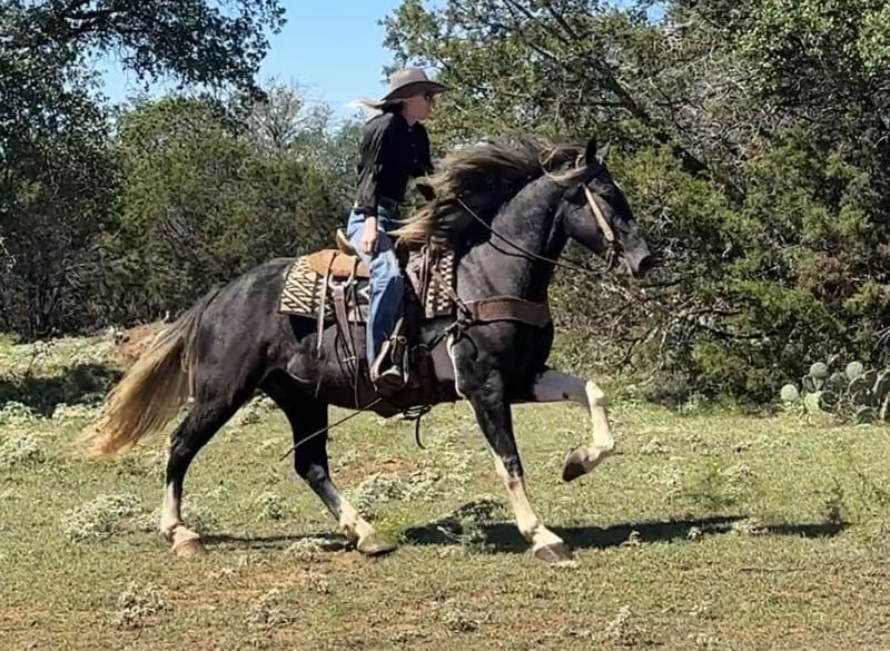 ONLINE AUCTION Place your bids at www.PlatinumEquineAuction.com Starting Bid $3500 Auction ends October 13th, 2024 Need a new saddle? Check out White Rock Saddles on our website or Facebook! Tin Man is a 4 year old Draft Cross Gelding standing 16 hands tall. He is extremely kind and gentle and full of personality. He is broke right and is soft to both hand and leg cues. We have ridden Tin Man out at the ranch, down the freeway, over the obstacles, and in the arena. He is sure footed, goes absolutely anywhere you ask him to, and is a fun and confident ride. We have started Tin Man roping slow cattle and pulling the log. He is gentle and has never offered to buck. He is very good to be around, saddle, bathe, pick feet, etc. We think Tin Man would make someone an awesome trail mount but he also has the athletic ability to be even fancier if someone wanted to go the performance horse world with him in either English or Western discipline. He is forward moving and perky eared and happy to go do something. Tin Man is sound and clean legged. FMI feel free to call/text Holland Horse Co. Chanel 559-978-6320. Located in Jacksboro, TX. We can help arrange shipping nationwide! ONLINE AUCTION Place your bids at www.PlatinumEquineAuction.com Starting Bid $3500 Auction ends October 13th, 2024 Need a new saddle? Check out White Rock Saddles on our website or Facebook!