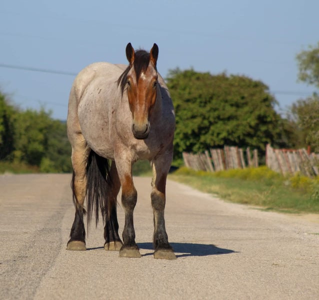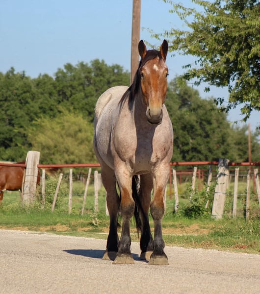 ONLINE AUCTION Place your bids at www.PlatinumEquineAuction.com Starting Bid $3500 Auction ends October 20th, 2024 Need a new saddle? Check out White Rock Saddles on our website or Facebook! Here is a unique opportunity to own a ONE of a kind gelding. Bojangles is the PRIME age of 4 years old with his WHOLE life ahead of him ! Standing 17 hds tall ! He is a gorgeous bay roan draft cross. He is puppy dog gentle from the ground all the way up to his back . He loves attention and will just put his head right in your lap to get as many hugs as you will give him . Don’t let his young age fool you it’s just a number and he acts like an old seasoned veteran . Bojangles was born and raised in Montana he has been rode up in some of the steepest country in the world , he’s sure footed and takes cares of you . He has seen many wildlife up in the mountains and is used to it all . He is excellent down the trail, he will cross logs , water , and bridges with ease. He is TRULY a gentle giant and so easy to be around . We have rode him in town several times including down at the famous Fort Worth Stockyards with crowds of people , loud music , carriage rides and heavy traffic he was unbothered by it all. He will ride out right down the hwy with semi trucks and cars zooming by him. Bojangles is great with his feet for the farrier , stands for bathes , easy to catch in the pasture where he currently has 4 other pasture mates . He stands for mounting from the ground and a mounting block . He stands tied and he be tacked up like a perfect gentleman. He is one you don’t want to miss. Watch his video and you will fall in love. Contact us to come try him, or we can set up a FaceTime also. If you need help with transport don’t hesitate to ask we have a list of reputable haulers that can get him safely to your doorstep world wide. Located in Stephenville, TX. Contact M $ Performance Horses Michelle 661-817-9120. ONLINE AUCTION Place your bids at www.PlatinumEquineAuction.com Starting Bid $3500 Auction ends October 20th, 2024 Need a new saddle? Check out White Rock Saddles on our website or Facebook!