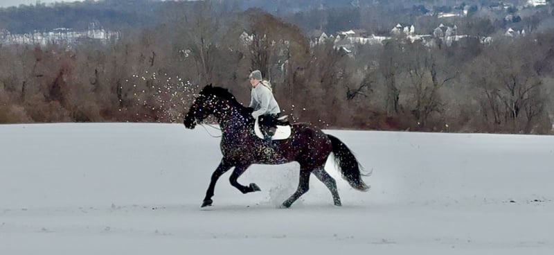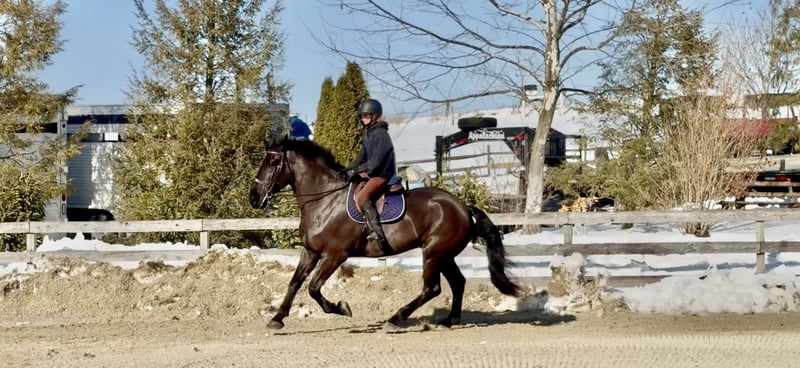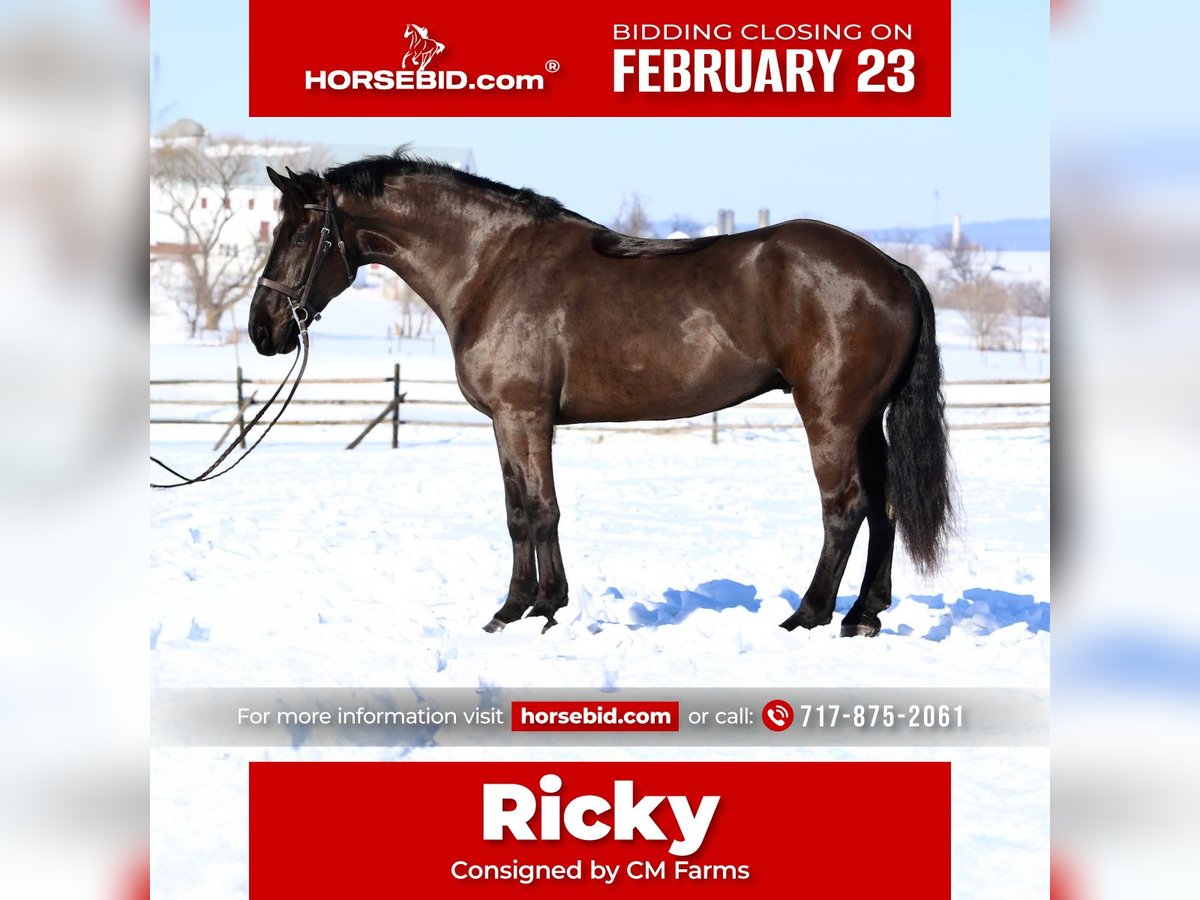 💎 𝐓𝐇𝐄 𝓓𝓲𝓪𝓶𝓸𝓷𝓭 𝐒𝐇𝐎𝐖𝐂𝐀𝐒𝐄 💎 Happening now thru MONDAY | FEBRUARY 23rd - Available EXCLUSIVELY on HorseBid's website! For more details and to register visit: www.Horsebid.com CONSIGNOR CONTACT: CM Farms 717-875-2061 LOCATION: Gap, PA BREED: Perch/Friesian REGISTERED: No REGISTERED NAME: Ricky COLOR: Black HEIGHT: 17.1 AGE: 6 GENDER: Gelding Meet ✨Ricky!✨ This guy is the definition of tall, dark, and handsome! Ricky is a 6-year-old Percheron/Friesian cross gelding standing an impressive 17.1–17.2 hands. He’s built correctly and substantially — you can’t miss this breathtaking boy! He’s like the semi-truck of the horse world, without the dinner-plate feet. He’s broke to ride Western, English, and bareback — and YES, he’s comfy as a couch! Ricky is a true gentle giant with a soft eye and an equally sweet personality. ❤️ In the ring, Ricky will walk, trot, and canter both ways. He’s been brought along slowly, carefully, and correctly, making him simple, straightforward, and easy to ride. This gelding has stunning, ground-covering movement that makes you feel like you’re gliding through the air. He has a soft feel in the hand and is very light on his feet for such a big guy. His trot is extremely comfortable and easy to sit, and he’s learning to collect and extend. His favorite speed is probably slow — he’s definitely a push ride and will never go faster than you ask. His canter continues to improve, with balanced transitions and consistent leads. While he appreciates encouragement to stay forward, he is always willing and eager to please. He stops on a dime off a “whoa” or simply your seat. He’s been lightly started over jumps and is showing nice potential. Overall, Ricky is an extremely quiet and safe ride — one you’ll look forward to pulling out every time. He’d be suitable for an AA, or even a beginner working with a trainer. 🤩 On the trail, Ricky is that steady-eddy type everyone wants. He’d make a fantastic husband or guest packer! He’s happy to lead or follow and doesn’t mind another horse getting into his personal space. You can ride him on the buckle, and he’ll mosey along wherever you point him. He has excellent manners out and the very best brain. He’s been on many trail rides with us, and we’ve even ridden him into town. Traffic and semi trucks don’t faze him at all. Ricky is the go-to guy for a relaxing ride — crack a beer, sit back, and let the worries melt away. He’ll go through water, canter open fields, or bushwhack through thick forest. He’s truly a point-and-go ride you can depend on to get everyone back to the barn safely. He really enjoys going out, and we could easily see him excelling as a trail partner or in fox hunting, paper chases, and hunter paces. ✨ In the barn, Ricky is well-mannered and respectful. He stands quietly on the ties for grooming, tacking, bathing, clipping, or simply being fussed over for hours. He enjoys attention and loves his people. He has a calm, quiet personality and respects your space — though he’ll be happily in-your-pocket once the cookies come out! 😆 He has zero bad stall or turnout habits and gets along well with others. Ricky is currently barefoot with nice, solid feet and is always well behaved for the farrier. He loads easily on the trailer and maintains his same quiet, steady demeanor both on and off property. Ricky lunges, does groundwork, and has completed our desensitization program with flying colors. He’s a true gentleman, and once he realizes you’re his person, you’ll have a best friend for life. We’re excited to see Ricky’s future and want only the very best home for this gentle giant. ❤️ Ricky is sound, healthy, and has zero vices. He is UTD on shots, deworming, Coggins, dental, and farrier care.