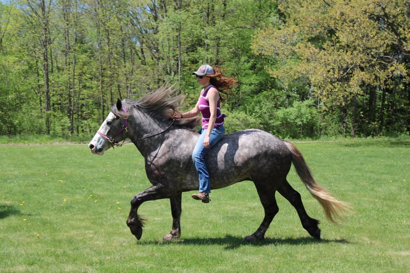 ONLINE AUCTION Place your bids at www.PlatinumEquineAuction.com Starting Bid $3500 Auction ends June 9th, 2024 Need a new saddle? Check out White Rock Saddles on our website or Facebook! “Cinnamon Twist” or Cinnamon as we call him is nothing short of spectacular. From his mind to his color there’s nothing he’s lacking. Cinnamon is a 15.3hh stout made Drum horse (Gypsy Vanner Percheron cross) dappled grey gelding. He is 5 years old. Cinnamon has an incredible mane and tail and light feathering. He has gorgeous conformation and his dapples have dapples. Not only is he stunning, he is sensible. Cinnamon will walk, trot, and canter with ease. All of his gaits are as comfortable as floating on a cloud. He has had years of natural horsemanship training and will ride completely tackless at the walk, trot, canter and even over jumps. He moves off of your seat and leg effortlessly. He has been in the city, in traffic, in the woods and in water. He has been in the arena and the fields. This guy will go anywhere with any rider onboard. He goes English, Western, and even bare back. He knows how to drive and loves it. Cinnamon has all the bells and whistles when it comes to his trick training. He will sit, lay down, and bow with a simple tap on his chest or ankle. He has seen tarps, umbrellas, yoga balls, bridges, inflatable dinosaurs, and much more. You will be hard pressed to spook him. This gelding has been on several hunter paces. He has also been used to round cattle. He jumps in beautiful form. He has been to schooling shows and used in lessons for kids as young as 5 years old. This is a unique find that would be an asset to anyone looking for a feathered horse that anyone can get along with anyone in any situation. Please call or text Ellesse Schwartz at 248-390-6831. Cinnamon lives in Howell, MI 48855. ONLINE AUCTION Place your bids at www.PlatinumEquineAuction.com Starting Bid $3500 Auction ends June 9th, 2024 Need a new saddle? Check out White Rock Saddles on our website or Facebook!