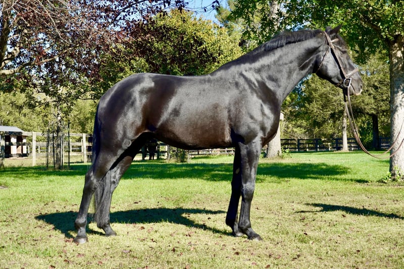 ⚜️ Das Horseman's Showcase ⚜️ Läuft jetzt bis MONTAG | 1. Dezember – Exklusiv auf der Website von HorseBid verfügbar! Für weitere Details und zur Anmeldung besuchen Sie bitte: www.Horsebid.com VERKÄUFERKONTAKT: Feelgood Farm LLC 240 660 0550 STANDORT: Tuscarora, MD RASSE: Percheron x Warmblut Zugelassen: Nein FARBE: Schwarz HÖHE: ca. 17,1 hh ALTER: 6 Jahre GESCHLECHT: Wallach TEXAS STAR Groß, dunkel und attraktiv! Texas Star ist ein 17,1 hh großer, 6 Jahre alter, Percheron-Mix-Gelding. Ein wunderschöner, jung und professionell ausgebildeter Pferd – ein echtes Highlight, das Sie nicht verpassen sollten! Er ist ein wahrer Traum mit bestem Aussehen und einem äußerst freundlichen Wesen. Tex ist bequem genug, um den ganzen Tag zu reiten, und läuft so geschmeidig, dass man es kaum glauben kann! Er ist robust gebaut und sportlich genug für jede Aufgabe – und dazu noch äußerst attraktiv. Texas Star ist sowohl im English- als auch im Western-Reiten gut ausgebildet. Er zeigt drei schöne, gut einstellbare Gänge, sowohl im Roundpen als auch auf dem Platz. Sein Galopp ist bergauf, gut kontrollierbar und rhythmisch – einfach zum Verlieben. Er freut sich auf Ausritte, Wasser- und Brückenüberquerungen, Springstunden oder Dressurvorführungen. Dank seiner Western-Ausbildung ist er auch im Ranch- und Freizeitreiten zuhause. Er kann an einem Tag entspannt auf dem Trail unterwegs sein und am nächsten eine Springstunde meistern. Er reagiert gut auf Sitz- und Schenkelhilfen, ist im Maul weich und zeigt großartige Bewegungen, flüssige Übergänge und ein auffälliges Erscheinungsbild, das ihn in der Dressur hervorstechen lässt. Am Boden ist Texas Star freundlich und respektvoll. Er hebt seine Beine höflich auf und ist gut zu baden. Er lebt neben einer Schussbahn und ist an laute Geräusche gewöhnt. Er ist anhänglich, aber nie aufdringlich. Er liebt es, gepflegt zu werden, und würde den ganzen Tag gern bei Ihnen sein. Sein freundliches, verspieltes Wesen sorgt stets für ein Lächeln. Im Herdenverband ist Tex unkompliziert. Er kann mit anderen Pferden zusammen auf die Weide gestellt werden und ist auch im Stall problemlos. Er ist leicht zu fangen und trifft Sie meist an der Pforte. Texas Star ist ein pflegeleichter Partner. Derzeit benötigt er keine Nahrungsergänzungsmittel oder Pflegeaufwand. Er hat keine bekannten Macken. Seine Hufe sind gut, und er ist kräftig gebaut. Keine bekannten gesundheitlichen oder sachdienlichen Probleme. Solche Pferde sind selten. Besonders macht ihn, dass er stets umgänglich und vernünftig ist, mit vorbildlichem Benehmen und beeindruckender Athletik. Das ist die Art Pferd, auf das man sich immer freut. Texas Star ist bereit, seinen besonderen Menschen zu finden! Er kommt mit einem sauberen Gesundheits-Check (PPE), und wir helfen gern bei der Organisation des Versands überall hin.