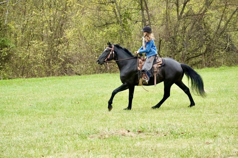 ⚜️ 𝓽𝓱𝓮 𝐇𝐨𝐫𝐬𝐞𝐦𝐚𝐧'𝐬 𝓢𝓱𝓸𝔀𝓬𝓪𝓼𝓮⚜️ Happening now thru MONDAY | DECEMBER 1st - Available EXCLUSIVELY on HorseBid's website! For more details and to register visit: www.Horsebid.com CONSIGNOR CONTACT: Feelgood Farm LLC 240 660 0550 LOCATION: Tuscarora, MD BREED: Percheron x WB REGISTERED: No COLOR: Black HEIGHT: 17.1 AGE: 6 GENDER: Gelding TEXAS STAR Tall, dark, and handsome! Texas Star is a 17.1 hand, 6 year old, percheron cross gelding. Gorgeous, young, and professionally started this guy is not one you'll want to miss out on! He is a total dreamboat with good looks and a super sweet disposition. Tex is comfy enough to ride all day and smooth enough to write home about! He is sturdy as they come and athletic enough to do any job; and handsome to boot. Texas Star is well broke English and Western. He has three lovely, adjustable gaits both inside and outside of the ring. His canter is uphill, adjustable, and rhythmic - it’s truly to die for. He is happy to go trail riding, cross water and bridges, take a jumping lesson, or show off in the dressage ring. With his western training, he excels in ranch and pleasure work. He can go on a leisurely trail ride one day and tackle a jumping lesson the next. He responds well to seat and leg cues and is soft in the bridle. He also has great movement, smooth transitions, and flashy looks that would make him a standout in the dressage ring. On the ground, Texas Star is sweet and respectful. He picks up his feet politely and is good for bathing. He lives next to a gun range and is used to loud noises. He is snuggly, but never pushy. He loves being groomed and would be happy to hang out with you all day. He will always make you smile with his puppy dog personality and his sweet demeanor. In the field, Tex is easygoing in a herd. He can be turned out with others and he is good in a stall. He is easy to catch and usually meets you at the gate. Texas Star is an easy keeper. He does not currently take any supplements or require maintenance. He has no known vices of any kind. He has great feet and a solid build. No known soundness or health issues. Horses like this don’t come along often. What makes this horse special is that he is always agreeable and sensible with great manners and incredible athleticism. This is the type of horse you always look forward to seeing. Texas Star is ready to find his special someone! Comes with a CLEAN PPE, and we can help arrange shipping anywhere.