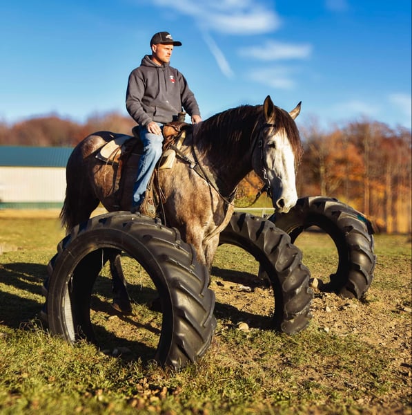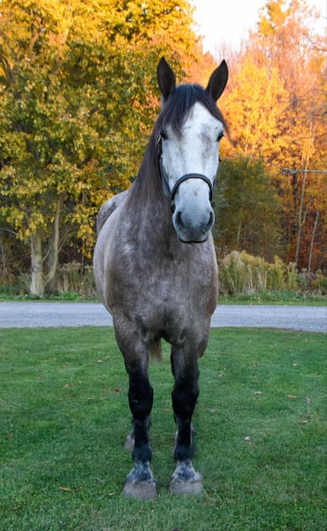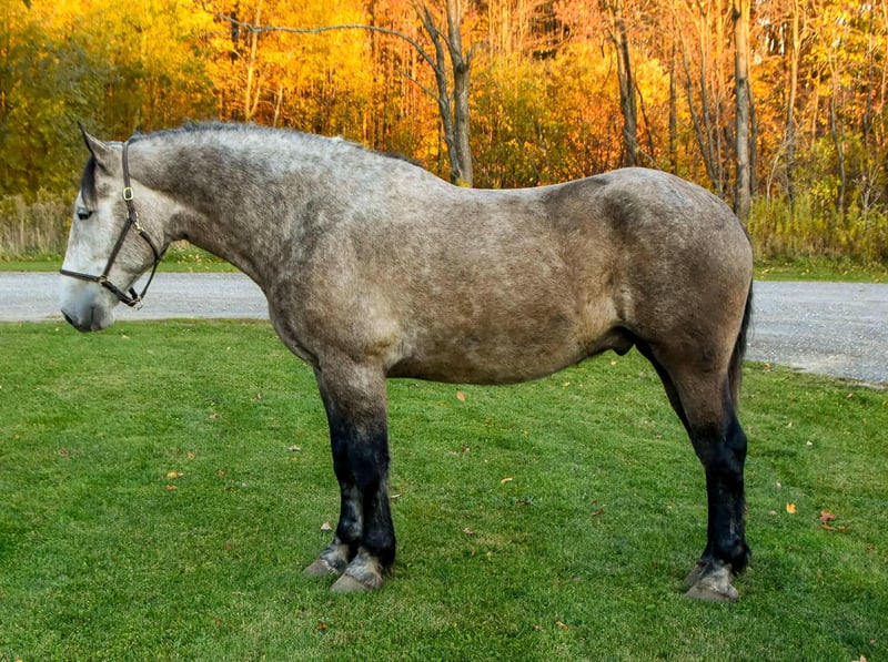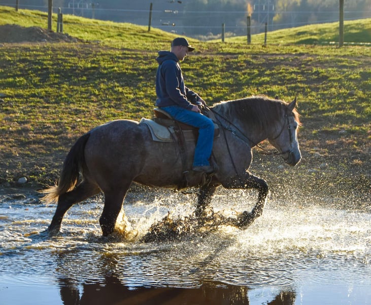 ONLINE AUCTION Place your bids at www.PlatinumEquineAuction.com Starting Bid $3500 Auction ends December 1st, 2024 Need a new saddle? Check out White Rock Saddles on our website or Facebook! Noah is a 6-year-old draft cross gelding standing 17.3 hands. Being a big guy, he walks, trots, and canters with poise. He knows his leads and can canter a nice circle in the arena. He is easy to mount and dismount and stands perfectly still for the mounting block! Noah clips well, easily loads in the trailer, and stands like a gentleman for the vet. His ground manners are excellent; he will stand all day tied with no fuss. He has been exposed to various farm animals and gets along with everyone. Noah will cross logs, bridges, water, and anything else you may encounter on the trail without hesitation. He will trail ride alone or in a group; traffic doesn’t phase him. He will go Western or English. Noah can ride all day on the trail or stand around and be loved. He is a big puppy and loves attention. He is not a bully in the pasture and gets along with mares and geldings. We have put him through our obstacle course, and he does great with all the obstacles. Tarps, bull whips, hills, or pulling objects, nothing bothers him. Under saddle, Noah will side pass and back with ease. He is wearing shoes all the way around due to the rocky conditions around the farm. He easily picks up his feet, but we use a stock to shoe him. Noah sells a 100% sound with No vices! Visit our Facebook page, Wolcott’s Versatility Horses and Training, for more information on our horses. Contact Dayton at 585-734-0169 for more info on Noah! Located in Warsaw, NY. ONLINE AUCTION Place your bids at www.PlatinumEquineAuction.com Starting Bid $3500 Auction ends December 1st, 2024 Need a new saddle? Check out White Rock Saddles on our website or Facebook!