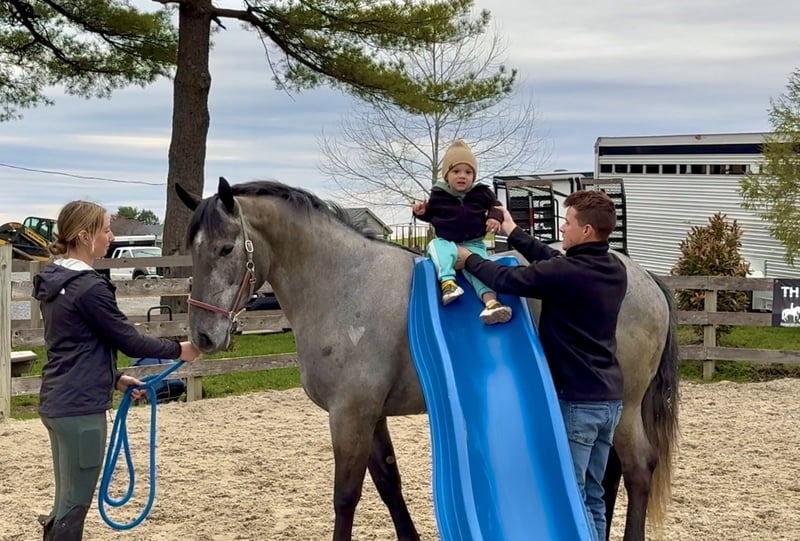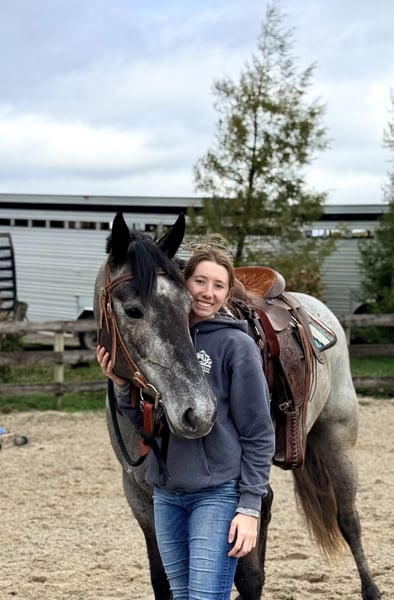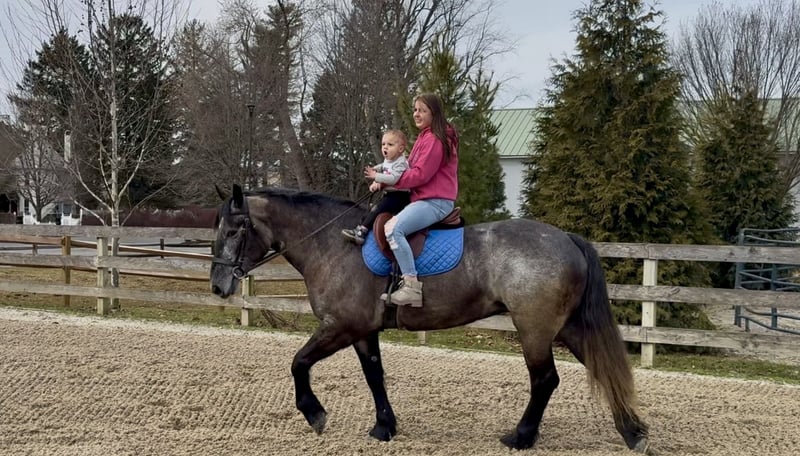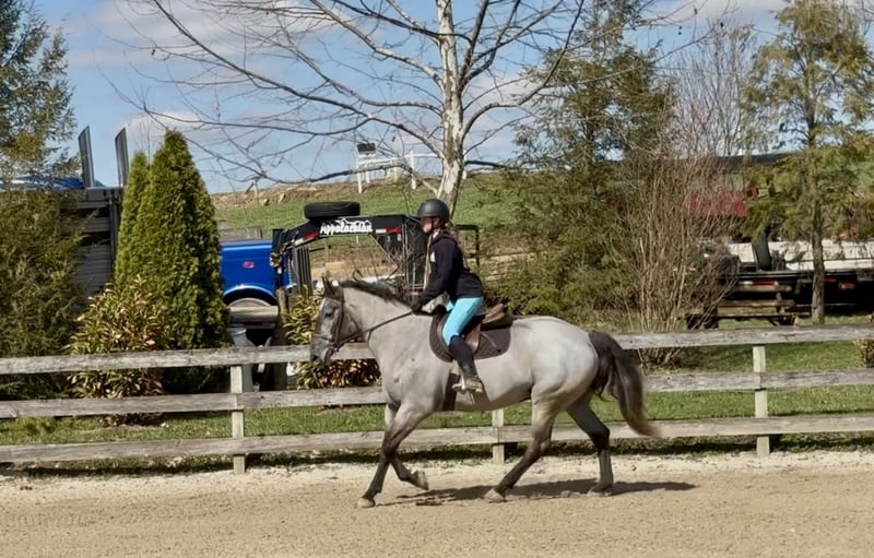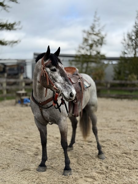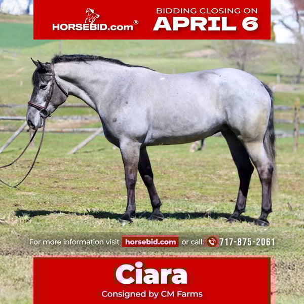 🌟𝑨𝒑𝒓𝒊𝒍 𝐀𝐋𝐋 𝐒𝐓𝐀𝐑 𝐋𝐈𝐍𝐄𝐔𝐏🌟 Happening now thru MONDAY | APRIL 6th - Available EXCLUSIVELY on HorseBid's website! For more details and to register visit: www.Horsebid.com CONSIGNOR CONTACT: CM Farms 717-875-2061 LOCATION: Gap, PA BREED: Perch/QHx REGISTERED: No COLOR: Grey HEIGHT: 15.2 AGE: 4 GENDER: Mare Check out this pretty lady! 😍 ✨Ciara✨ is a 4-year-old, 15.2hh Perch/QHx mare. This girl is a beauty! She’s calm, gentle, safe, and sensible. She’s the perfect in-between build—not too tall, but stocky enough to carry a variety of riders. She’s a little tank! Ciara is broke to ride western, English, and bareback. She’s incredible on the trail and in the arena! She is not your “typical mare”—she has the best attitude, genuinely loves people, and is wise beyond her years.❤️ In the ring, Ciara has a solid walk, trot, and canter in both directions. She will pick up walk-to-canter transitions, move nicely off your leg, and is adjustable at all three gaits. She’s more of a forward-thinking ride and has her own motor, making her light and easy to ride! She’s responsive to your seat and has a nice stop. She’s probably not winning any races, but if you want something that carries itself around the arena without having to kick every step, she’s the perfect one. We could see her being suitable for an amateur or intermediate beginner working with a trainer. She has an incredibly level, safe mind and isn’t one to spook at anything. She has no naughty habits under saddle and is just easy to get along with!🥰 On the trail, Ciara is a steady and reliable mount. She’s a trailblazer in every way—point her in the right direction and she’ll take care of the rest. She’ll take a dip in the river, canter through the fields, squeeze through tight wooded trails, and cross bridges and creeks, all while keeping her happy-go-lucky, drama-free attitude. She’s just as content walking on the buckle as she is keeping up a quicker pace. Ciara is such a good girl she doesn’t even mind if the geldings ride up too close or get in her personal space. She’s been desensitized to just about everything and is truly unflappable. She’s 100% traffic safe and has even been ridden alongside our busy road into town. Semi trucks? No problem. Ciara is the kind you can take out and truly enjoy—she’s stress-free and likes to have a good time. We could even see her packing the husband around for a relaxing hack with how level-headed and easy she is! Ciara is a rose among thorns in the barn. She doesn’t have any typical mare attitude—you wouldn’t know she’s a mare if you didn’t check! She’s always happy and gentle with everyone and everything, including kids and dogs. Her personality makes her the perfect candidate for a family horse! She stands patiently for grooming, bathing, tacking up, and for the farrier and vet. She’ll stand all day for attention and cookies. She has excellent ground manners—easy to catch, lead, load, and handle in the stall. She’s a happy camper in every way, willing to please, and will make someone an incredible lifelong partner!👑 UTD on Shots, Coggins, Dentist, Deworming, and Farrier. ❤️