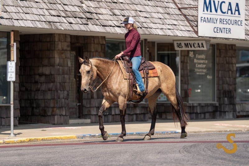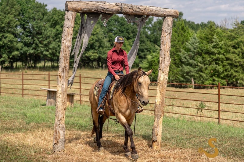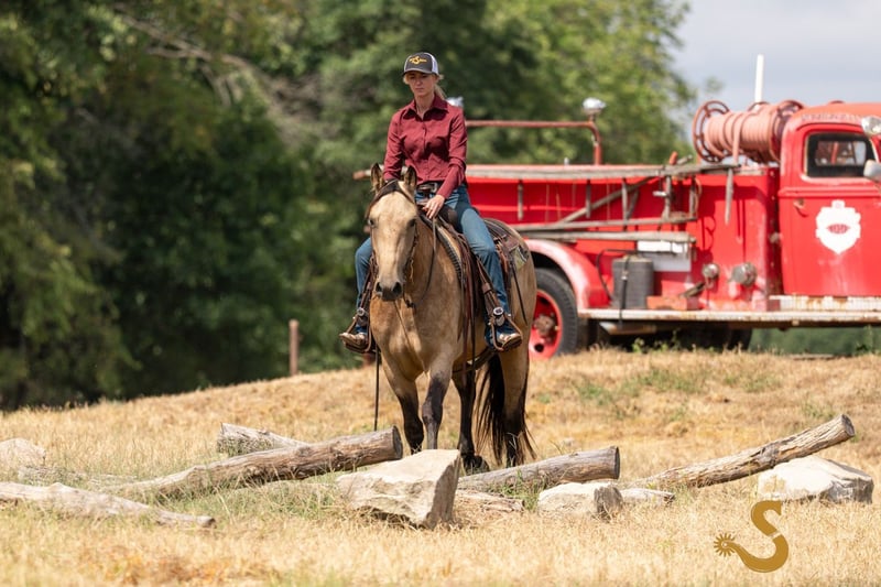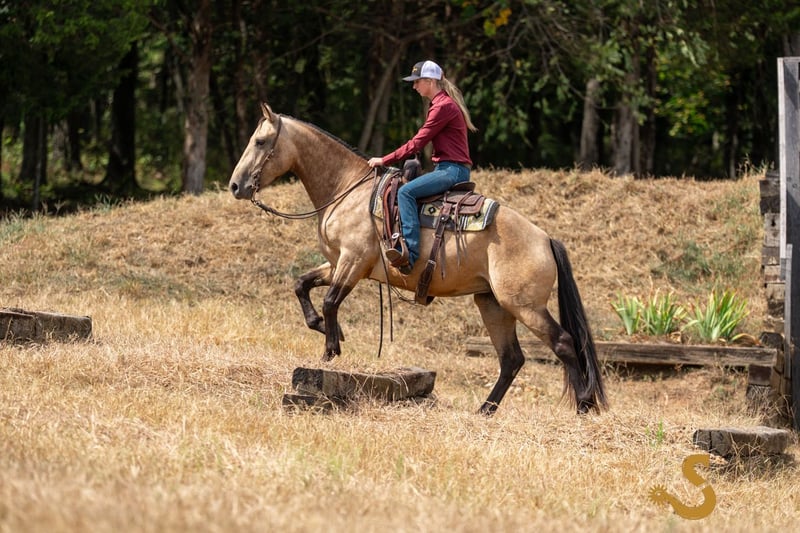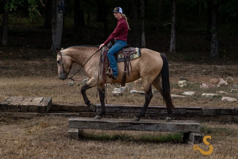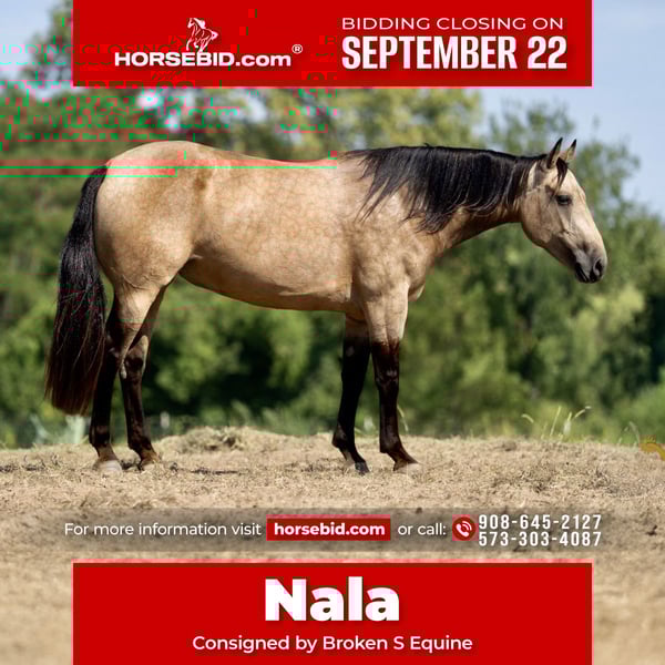 🍁𝒕𝒉𝒆 𝐅𝐀𝐋𝐋 𝑺𝒑𝒆𝒄𝒕𝒂𝒄𝒖𝒍𝒂𝒓🍁 Happening now thru MONDAY | SEPTEMBER 22nd - Available EXCLUSIVELY on HorseBid's website! For more details and to register visit: www.Horsebid.com CONSIGNOR CONTACT: Broken S Equine Kieran 908-645-2127 or Beau 573-303-4087 LOCATION: Bogard, MO BREED: Percheron x Quarter Horse REGISTERED: No REGISTERED NAME: Nala COLOR: Buckskin HEIGHT: 15.3 AGE: 5 GENDER: Mare Nala is a 5 year old Quarter Horse x Percheron mare standing 15.3 hands high. Nala is the type of horse that turns you into a mare lover. She is up for any adventure, and sensible enough for any job. She has had a versatile upbringing, setting her up for success in anything you choose to do with her. She is sporty and brave on the cross country field, sure footed on the trails, well broke under western tack, and a fantastic partner in the dressage arena. Nala is no drama, smart as a whip, and just loves having a relationship with her person. Some folks say they aren't mare people, but when you get to form a bond with a horse like Nala, you form a true partnership that will have you feeling unstoppable together. In the ring, Nala will ride both English and western. She has great lateral work, easy transitions, picks up both leads, and is schooling flying changes. She will ride on a loose rein, or round in the bridle, and listens well to leg, seat, and voice cues. Under western tack, Nala has a nice neck rein, spin, and big stop. She has the foundation that has set her up to easily be able to do dressage, western dressage, working equitation, and more! Over fences, Nala has lots of scope! She has been introduced to various fences on the cross country field and in hunt country. She will jump down banks, over ditches, coupes, walls, logs, and more! Eventing dreams? Nala is your girl! On the trails, Nala will ride alone or in a group. She is used to hopping in the trailer and going new places. She crosses water, logs, bridges and more. She's gone riding in town, and is safe in traffic and by busy roads. She's a master on the obstacle course too! In the barn, you would have no idea Nala is a mare. She is sweet and gentle, and absolutely drama free. She has great ground manners, and stands politely for all the usual tasks. She is happy living inside or out, and gets along in turnout with mares and geldings. ⚫️Nala is an easy keeper that requires no maintenance. We have a recent, clean vet check on file. ⚫️Our program aims to train and produce top quality horses and ponies for all disciplines and experience levels. Check out our website for testimonials! ⚫️We are located in Bogard, MO. We can help you arrange shipping anywhere! ⚫️For more information about Nala, or any of our other horses call or text us. Kieran 908-645-2127 Beau 573-303-4087
