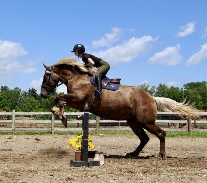 ONLINE AUCTION Place your bids at www.PlatinumEquineAuction.com Starting Bid $3500 Auction ends July 14th, 2024 Need a new saddle? Check out White Rock Saddles on our website or Facebook! If a horse could walk out of a fairy tale into your barn this would be her. She is every bit as magical in person. I’m proud to introduce you to Birdie. This draftcross girl stands 16.3 at 4 years old. She has a beautiful blonde mane and flowing tail which compliment her silver dappled coat. Birdie has excellent conformation. She is well muscled with great bone structure and solid hooves. She is so stunning you could sit and look at her all day! Birdie has the most enthusiastic personality you will find in a horse. She is ALWAYS willing to please. She has a lot of liberty training. Birdie knows how to sit, lay down, and say yes and no. Under-saddle this girl is just about effortless to ride. She has quiet walk, a beautiful trot and the best canter you will sit on. She comes equipped with amazing transitions, both upward and downward, and her brakes are good. She carries herself with a great deal of cadence and class. She has been trail and road ridden, and she will go any where you ask with no silly business. Good luck spooking her! She’s as cool as they come in just about any situation. In addition to her liberty work, Birdie has some very cool buttons. She can canter from a halt, leg yield, side pass, back up, move on and off of seat and leg pressure. Birdie has been playing around with 1st level dressage movements, such as shoulder in, haunches in, extension and collection in all of her gaits. Birdie has been very lightly started over fences. She has been on several hunter paces and has spent many hours out on the trails! This is the most beautiful girl in town. Please call or text Ellesse Schwartz at 248-390-6831 for more information. Birdie lives in Howell, MI 48855. ONLINE AUCTION Place your bids at www.PlatinumEquineAuction.com Starting Bid $3500 Auction ends July 14th, 2024 Need a new saddle? Check out White Rock Saddles on our website or Facebook!