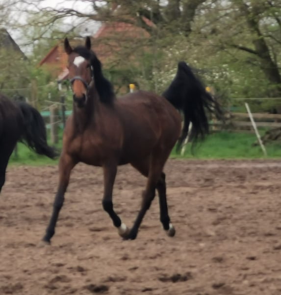 Für unseren Magic Moonlight aus Mai 2025 suchen wir ein wertschätzendes zu Hause . Er hat eine Fohlenprämie bekommen und ich hätte ihn gerne als Hengstanwärter behalten . Durch eine OP meinerseits ist es mir leider länger nicht möglich mit ihm in die Kinderschule zu gehen , was immer mein Anspuch an junge Pferde ist , damit sie an alles so früh wie möglich gewöhnt werden . Minni Manni ist etwas ganz besonderes, da wir bewußt durch die Mutter Manaia (VB) und dem Vater Mighty Pleasure ( DRXXL) eine Veredelung der extra Klasse gewollt haben . Die Eltern sind nachfolgend auf den Bildern zu sehen . Der kleine Schatz macht sich großartig , ist sehr gelehrig und ist dazu noch wunderschön . Ihm stehen alle Sparten der Reiterei offen von Spring über Vielseitigkeit oder auch Dressur könnten wir ihn auch im Fahrsport sehen . Sein zu Hause sollte langfristig sein und nicht als Zwischenstation dienen . Gerne hätte ich Menschen , die im Sport etwas für die Zukunft suchen , denn ich könnte mir vorstellen das er dort was ganz großes werden kann . Seine Mama ist ca 1.61 groß und sein Papa 1, 53 , somit ist er als kleines deutsches Reitpferd mit vollem Papier im Zfdp eingetragen. Selber ist er derzeit ca. 1.35 groß und wird im Mai 1 Jahr alt . Wer den kleinen Prinzen kennen lernen möchte , darf sich jederzeit gerne melden . Wir sind in 31637 zu Hause Der Preis ist der Qualität entsprechend und ist wenn , nur vor Ort und bei einem tollen zu Hause verhandelbar . Pferde gibt es viele , aber Qualität wird derzeit leider nicht mehr gewertschätzt , deshalb freue ich mich umso mehr , wenn diese bei besonderen Pferden gesehen werden .