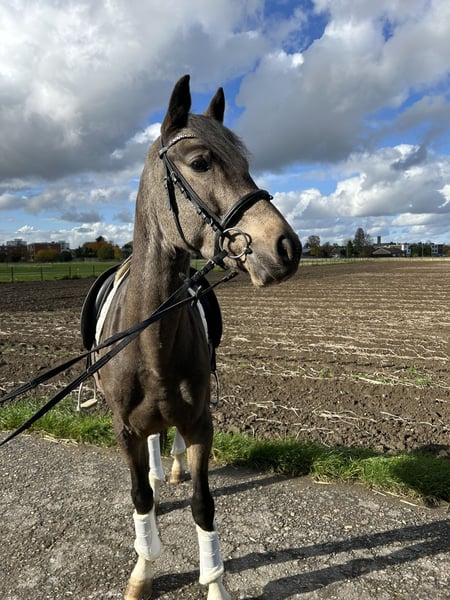 Unser hübscher, ca. 1,53 m großer 4-jähriger Wallach sucht ein liebevolles Zuhause, in dem er weiter gefördert und ausgebildet werden darf. Er ist seit Anfang des Jahres unter dem Sattel und zeigt sich dabei immer brav, ehrlich und bemüht – ein echtes Verlasspferd in Ausbildung! Sowohl beim Reiten als auch im täglichen Umgang ist er zu 1000 % zuverlässig und macht einfach Freude. Dodo, lässt sich gelegentlich noch etwas von seiner Umwelt ablenken, bleibt dabei aber stets lieb, gut händelbar und bemüht, alles richtig zu machen. Sein Herz schlägt für Menschen – er ist unglaublich verschmust, aufmerksam und liebevoll, dabei ist er respektvoll im Umgang. Wir wünschen uns für ihn ein Zuhause, in dem er weiterhin mit Geduld, Liebe und Freude lernen darf. Durch seine Qualität bringt er die besten Voraussetzungen mit, um sich zu einem tollen Sportpartner und Freund fürs Leben zu entwickeln. Ein TÜV ist noch nicht vorhanden. Bei ernsthaftem Interesse freuen wir uns über eine Nachricht und ein persönliches Kennenlernen!