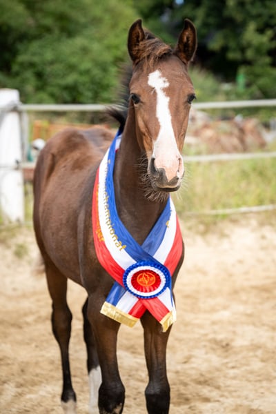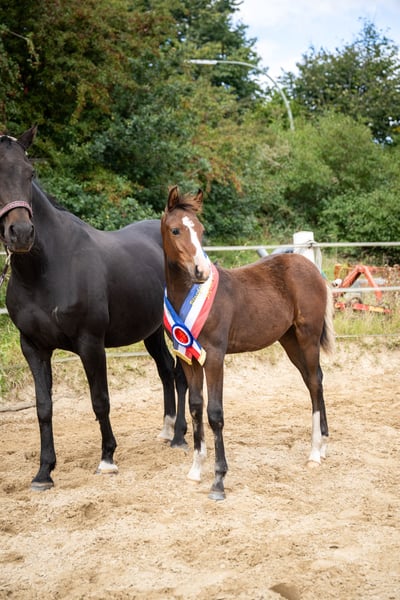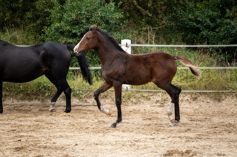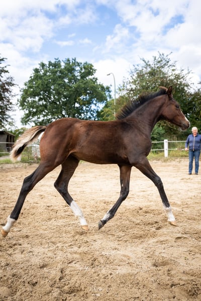 Willow ist eine vielversprechende,vielseitig veranlagte Stute . Diese menschenbezogene und immer freundliche Stute ist mit 3 hervorragenden GGA ausgestattet. Beim Fohlenchampionat in Bad Segeberg wurde sie Rassesiegerin der kleinen Deutschen Reitpferde. Ihr Vater Noble Dance ,147 cm, wurde 2024 Bundeschampion der 3-jährigen Reitponyhengste . Ihre Mutter ist ein 160 cm große Holsteiner Stute von Lucky Champ , Stamm 4815. Willow kann November/Dezember in ihr 5 Sterne zuhause ziehen.