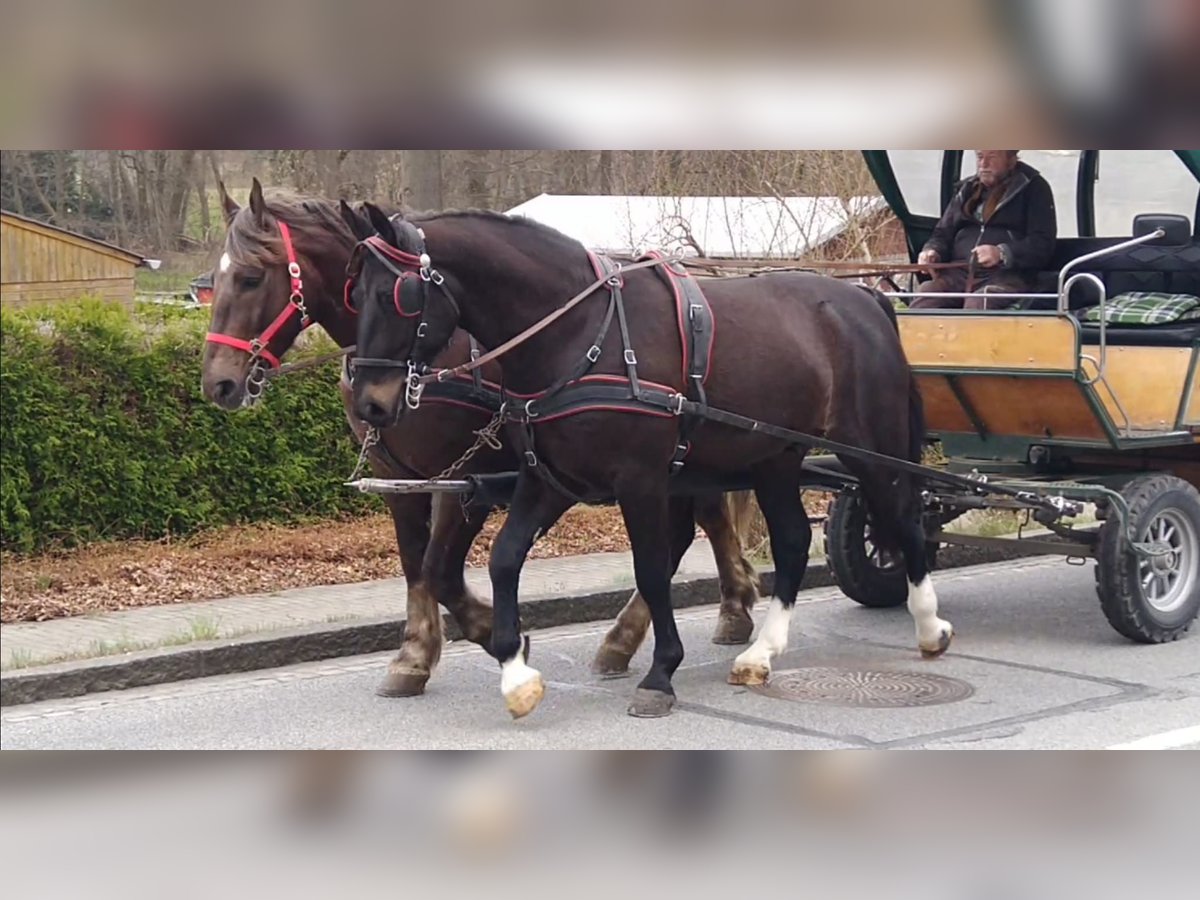Lanzelott – Heavy Warmblood gelding, 3 years old, currently 1.66 m (16.1 hh), a black-brown SW gelding, a true Moritzburger with excellent conformation, original type, superb driving qualities. His sire is a top-performance horse competing in 16-horse-drawn carriages, correctly built with a solid foundation, excellent movement, and a very good character. He is easy to harness, both left and right sides, suitable for road traffic, strong and reliable. The gelding was raised with us and is now driven three times a week in harness. Sire – Lombardo / Dam – Zita vom Excellent P The last picture shows the sire. Price: €9,000 negotiable Contact: 0171/3132074