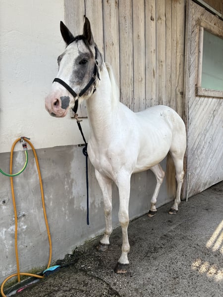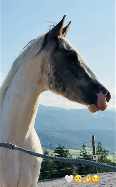 3j Wallach wegen zeitmangel zu verkaufen ca 156 stkm verladefrom kennt hufschmied bodearbeit freiarbeit handpferd und reitergewicht unerschrocken neugierig (traktor, hunde, kühe,…) aktuell offenstallhaltung kennt aber auch box inkl zubehör