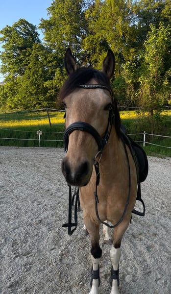 Maly ist nicht nur aufgrund ihrer außergewöhnlichen Farbe ein echter Blickfang, sondern auch durch ihren besonderen, herzlichen, temperamentvollen Charakter. Von Boden- bis zur Dressurarbeit arbeitet sie engagiert mit und freut sich auf viel Abwechslung durch kleine Sprünge oder Ausritte - ein echter Allrounder mit viel Talent. Sie verfügt über eine solide Grundausbildung, welche jedoch mit dem richtigen Reiter an ihrer Seite noch deutliches Potenzial hat. Maly hat zwar kaum Turniererfahrung, es ist jedoch keinen Falls auszuschließen, da sie grundsätzlich sehr unerschrocken und mutig an Neues herangeht. Ich würde mir ein schönes Zuhause und eine/n freundliche/n, neue/n Partner(in) an ihrer Seite wünschen, die/der Malys Talent weiter fördert und sich auf ganz viel Spaß mit ihr freuen darf! Bei Interesse oder für weitere Informationen stehe ich gerne zur Verfügung. Besichtigung und Proberitte sind nach Vereinbarung möglich.