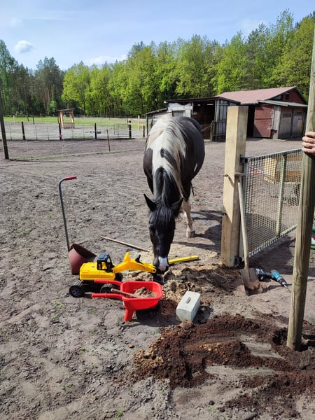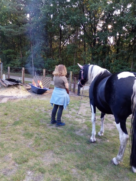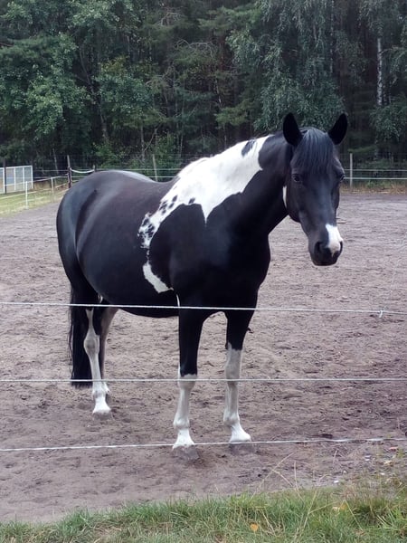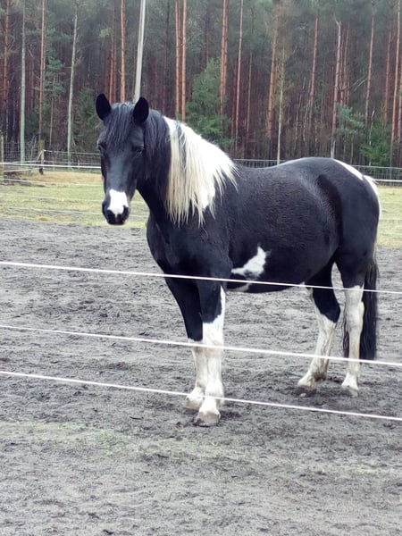 Unsere Pinto Stute sucht ein neues, liebevolles Zuhause. Hat ein Stockmaß von 1,54m. Wir haben Sie im Alter von 5 Jahren aus nicht optimaler Haltung übernommen. In den letzten Jahren haben wir viel Zeit und Herzblut investiert, um sie sowohl körperlich wieder aufzubauen als auch den Umgang mit dem Menschen zu festigen. Sie wurde von uns sozialisiert, aufgepäppelt und behutsam angefangen sie ausgebilden. Sie steht in unserem Offenstall mit zwei Wallachen zusammen, kennt es aber auch in der Box zu stehen. Sie ist sehr Menschenbezogen geworden und möchte immer dabei sein. Sie braucht volle Aufmerksamkeit, sonst fordert sie diese auch ein. Bodenarbeit macht ihr sehr viel Spaß, sie läuft auch frei hinter einem her. Lässt sich um die Vorhand, Hinterhand und seitwärts verschieben. Kann sich um sich selbst drehen. Hat keine Angst vor Planen, Fahnen, Hüpfetieren, Seifenblasen, Feuer, Motorsägen, etc. Lässt sich vom Boden in allen drei Grundgangarten longieren mit und ohne Sattel. Sie wurde im Schritt und Trab geritten auf dem Platz. Im Gelände war sie bisher nur zu zweit unterwegs. Sie wurde bei uns nur gebisslos gearbeitet. Sie steht jedoch noch nicht am Ende ihrer Ausbildung und ist daher kein Kinder oder Anfängerpony. Sie braucht eine feste Person mit etwas Erfahrung, die ihr Sicherheit gibt und sich auch durchsetzen kann. Charakterlich ist Sie eine sehr unerschrockene und coole Stute. Sie zeigt keine Ängste bei Trecker, Autos, LKWs, Fahrrädern, Motorrädern oder anderen unheimlichen Dingen. Im Umgang ist sie unkompliziert: Tierarzt – brav Hufschmied – problemlos Anhänger fahren – kennt sie und macht sie gut Aufgrund veränderter persönlicher Lebensumstände können wir ihr leider nicht mehr die Arbeit und Förderung bieten, die sie verdient. Sie wurde die letzte 1,5 Jahr nicht mehr aktiv gearbeitet. Daher haben wir uns schweren Herzens entschieden, für sie ein neues Zuhause zu finden. Wichtig: Sie wird nicht aus Zeitdruck verkauft. Für uns steht an erster Stelle, dass sie ein wirklich passendes und liebevolles Zuhause bekommt, in dem sie gefördert wird und ihr Potenzial entfalten kann. Bei ernsthaftem Interesse freuen wir uns über eine Nachricht. In einem Telefonat erzählen wir gerne mehr über Sie.