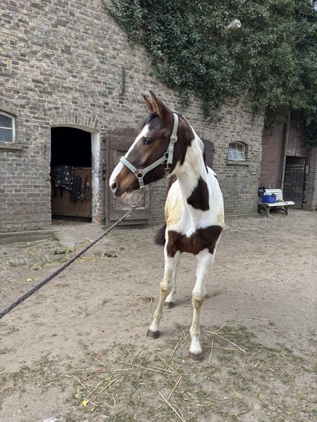 Hierbij verkoop ik mijn mooie merrie. Ze is heel lief, gewend aan mensen, laat zich uitstekend aan de halter leiden, wordt makkelijk gepoetst, aangebonden en ingeladen. In omgang is ze voor haar leeftijd echt een schat. Het uitkrabben van haar hoeven is geen probleem. Bij de hoefsmid is ze nog een beetje onrustig, maar kan zich goed laten afleiden met voer. Ze kent kinderen en trekkers. Als kinderen in haar buurt zijn, blijft ze rustig en laat zich zelfs door kleine kinderen poetsen.
