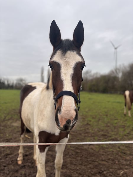 Hiermit verkaufe ich meine hübsche Stute. Sie ist total lieb, an den Menschen gewöhnt, lässt sich super am Halfter führen, lässt sich putzen, anbinden und verladen. Im Umgang ist sie für ihr Alter ein richtiger Schatz. Hufe auskratzen ist auch kein Problem. Beim Schmied ist sie noch etwas aufgeregt, lässt sich aber mit Futter super ablenken. Sie kennt Kinder und Trecker. Wenn Kinder um sie rum sind, bleibt sie ruhig und lässt sich auch von kleinen Kindern putzen.