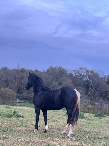 Available for sale: an exceptional filly named Valentine. A highly sought-after cross that combines the majesty and bone structure of the Friesian breed (mother) with the distinctive coat pattern of the Pinto (father). Age: 18 months (a year and a half). Conformation: Large stature, excellent build, and elegant movements. She features a beautiful two-tone tail and a star. Temperament: Outstanding character. She is a very gentle filly, raised in close contact with humans and easy to handle. Ideal for someone looking for a future trustworthy riding horse.