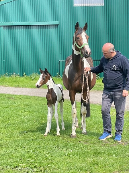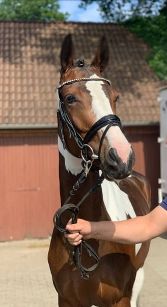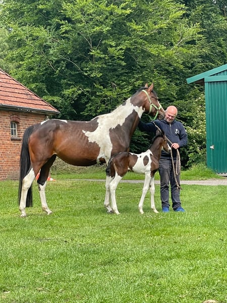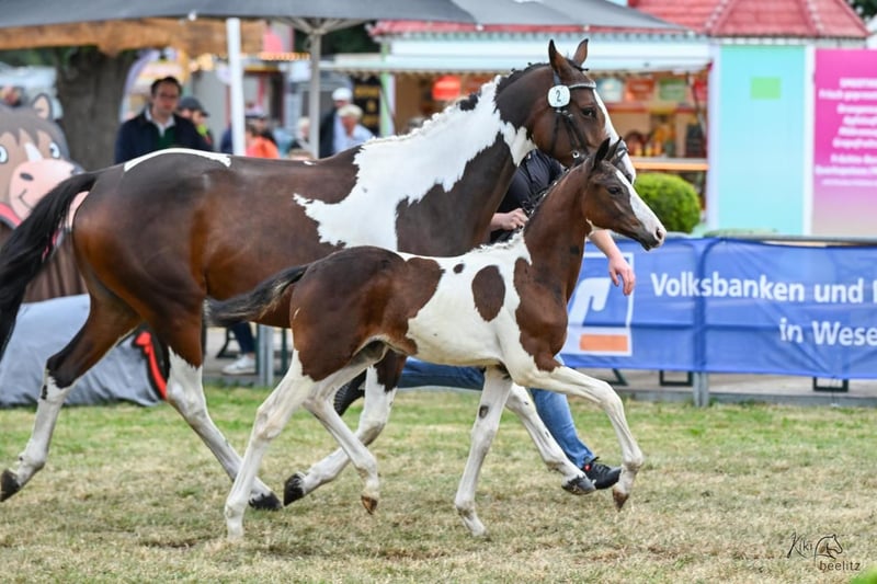 Looking for an eye-catcher of exceptional quality? Introducing Valencia S, a 5-year-old ZfdP mare by Strahlemann out of the show-winning mare Viva Luna by Sunny Boy. As a foal, Valencia S received high praise from the German Horse Breeding Association (ZfdP) and was named the ZfdP National Champion Foal for Pinto in 2021 in Alsfeld. She was backed at three years old and achieved an excellent performance test with ZfdP, placing 4th. Subsequently, she went into healthy breeding, producing a filly by Sir Oldenburg in 2025. The mare is incredibly well-behaved, excels in free jumping, and was a true gem during her initial training. She is currently not re-trained but can be easily brought back into work. She is being sold solely to caring hands due to her valuable offspring. A fantastic mare for both competitive sport and high-level leisure riding, but also a true eye-catcher as a broodmare. Videos of her performance test and free jumping are available. A video showing her with her foal at the 2025 foal inspection can be viewed on ehorses. Viewing possible at any time. A health certificate (TÜV) will be provided upon serious purchase interest. Otherwise, she is perfectly healthy and extremely well-behaved.