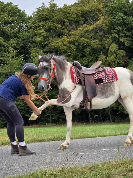 Pintoponey MELINA Taille : environ 1,36 m, passeport électronique, microchip et examen vétérinaire Prix : 4300,- AKU disponible Elle est : – douce au contact et sous la selle – amicale et attachée aux humains – désireuse d'apprendre et fiable – de couleur rare et frappante – parfaitement adaptée pour les loisirs et le terrain Parfaite pour : Des cavaliers avec un peu d'expérience qui souhaitent continuer à former une jeune jument solide Nos chevaux : – régulièrement vermifugés – suivis par le maréchal-ferrant et l'ostéopathe Magasin de la ferme : Selles western, brides, accessoires Transport et accessoires organisés à bas prix sur demande Notre service : ✅ Droit de retour de 3 mois ✅ Essai : 35 €, chaque cheval supplémentaire 25 € (déduit lors de l'achat le même jour) ✅ Remise immédiate de 100 € pour enlèvement/transport le même jour ✅ Conseil personnel et honnête Veuillez faire vos demandes uniquement par téléphone : 0171 – 4001968 Disponible tous les jours de 8h à 20h ⚠️ Pas d'e-mail ou de WhatsApp ⚠️ Toutes les informations sans garantie