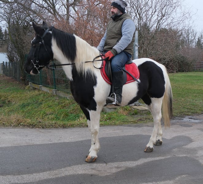Einfache, unkomplizierte Stute,brav im Umgang und problemlos zu reiten. Sicher im Straßenverkehr und Gelände. Lora ist auch einspännig gefahren. 6 Jahre, 152cm Bei Interesse bitte anrufen, keine Mail! Für eventuell auftretende Fehler in der Beschreibung gilt keine Gewähr! Tel.: 0173-3843407 Da es sich um ein lebendes Tier handelt, sind dies subjektive Eindrücke des Anbieters und keine zugesicherten Eigenschaften des Tieres! Ständig schöne Fahr-u.Freizeitpferdesowie neue Kutschen verschiedener Modelle preiswert im Angebot. Anschrift Stall: 99628 Buttstädt, Oberwendenstraße 39