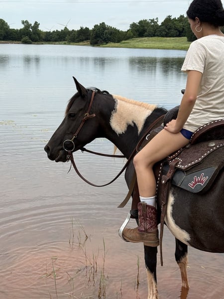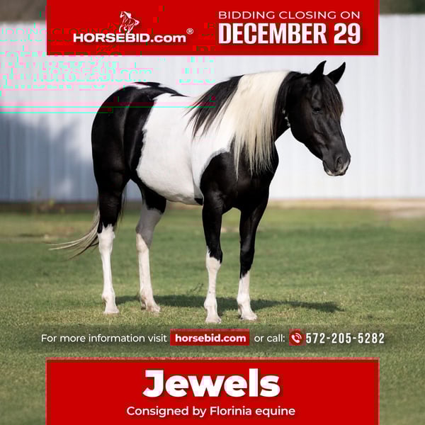 ⚜️𝐓𝐇𝐄 𝓗𝓮𝓻𝓲𝓽𝓪𝓰𝓮 𝐖𝐢𝐧𝐭𝐞𝐫 𝓒𝓵𝓪𝓼𝓼𝓲𝓬⚜️ Happening now thru MONDAY | DECEMBER 29th - Available EXCLUSIVELY on HorseBid's website! For more details and to register visit: www.Horsebid.com CONSIGNOR CONTACT: Florinia Equine 572-205-5282 LOCATION: Guthrie, OK BREED: Pinto REGISTERED: Yes REGISTERED NAME: Blackberry Jewels COLOR: Black /white tobiano HEIGHT: 14 AGE: 8 GENDER: Mare ✨ Blackberry Jewels ✨ The ultimate kid horse dream wrapped in a Barbie package If you’re searching for the kind of mare everyone hopes to find once in a lifetime—here she is. Blackberry Jewels is a literal Barbie horse: jet-black, long flowing mane to her shoulders, a precious baby-doll head, and big soft doe eyes that melt you the second you see her. But her looks are just the beginning. This mare is gentle, gentle, gentle. Safe, kind, and honest every single day. She is traffic safe, confident outside the arena, and the same horse whether she’s been ridden yesterday or last month. She has been owned and loved for the past 3 years, never passed around, and it shows in her solid mind and willing attitude. Jewels is truly an all-around unicorn: • Barrels ✔️ • Poles ✔️ • Roping ✔️ • Ranch work & cattle ✔️ • Trails ✔️ • Fancy mover in the arena ✔️ She will do anything you ask with a soft try and a great brain. Push her forward for speed events or just cruise around—she meets her rider exactly where they’re at, making her a dream kid horse and a confidence builder for adults too. The easy stuff? She’s perfect: • Stands tied & for the farrier • Picks up all four feet • Loads, hauls, and unloads quietly • Rides out alone or in a group • No nonsense, no surprises At 14 hands, she’s the perfect size with a big heart and a can-do attitude. Whether you want a youth horse, family horse, or a flashy mare that can truly do it all, Blackberry Jewels checks every box—and looks incredible doing it. 💎 Safe. Stunning. Versatile. The real deal. This is the kind they don’t come around often.