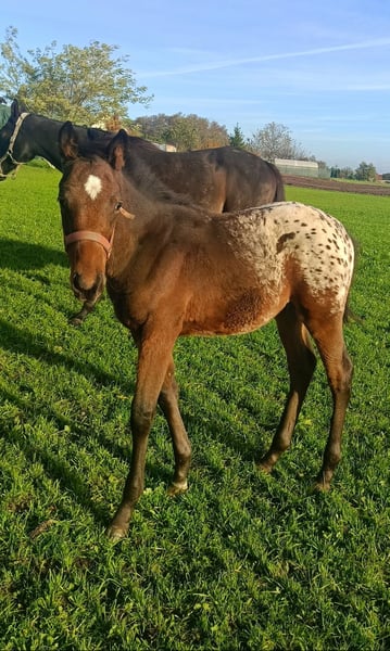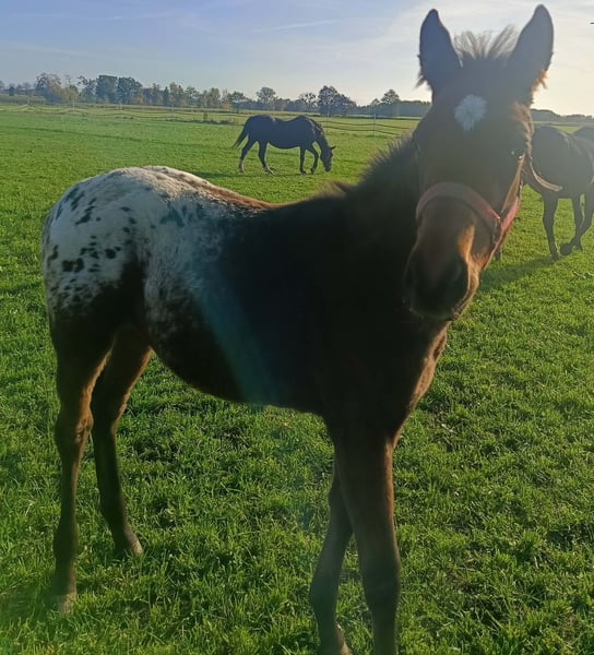 Elegancki Ogier Gorącokrwisty na Sprzedaż Z przyjemnością oferuje obiecującego młodego ogiera gorącokrwistego, urodzonego w 2025 roku, docelowo około 165 cm w kłębie. Ten dobrze urodzony ogierek charakteryzuje się efektowną maścią tarantowatą, doskonałą budową i zrównoważonym temperamentem. Został starannie wychowany, z naciskiem na wszechstronność, co czyni go odpowiednim kandydatem do skoków przez przeszkody, WKKW lub ujeżdżenia. Jego szlachetna budowa i naturalny ruch stanowią solidne podstawy do dalszego treningu i rozwoju. Fantastyczna okazja dla każdego, kto chce zainwestować w utalentowanego i obiecującego młodego konia. Aby uzyskać więcej informacji lub umówić się na oglądanie, prosimy o kontakt.