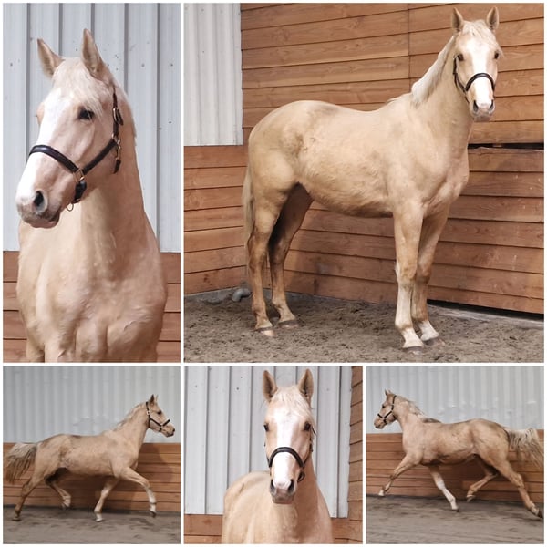 Fur info konnen sie auch anrufen oder ein whatsapp schicken, wir sprechen auch Deutsch. 0031613704472 Stoere 3 jarige palomino hengst Afstamming: Krem x Mc Jonnas x Baron x Beethoven. Beweegt met veel kwaliteit! Maakt ook een leuke sprong. Hij is geboren op 15 mei 2023 en heeft een stokmaat van circa 1.70m. Hij is rontgen gekeurd incl. Hals en rug! Daarnaast zijn z'n tanden recent gedaan. Komt net uit de groep, loopt netjes mee aan halster en is bekend met de stapmolen. Voor de rest nog onbeleerd. Voor meer info graag bellen of appen, ons nummer: 0613704472