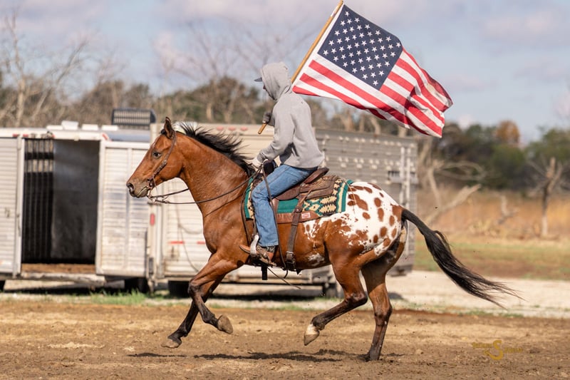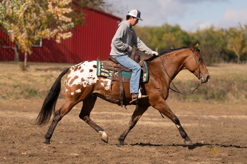 🎲𝓽𝓱𝓮 𝐑𝐈𝐃𝐄𝐑'𝐒 𝓒𝓱𝓸𝓲𝓬𝓮🎲 Happening now thru MONDAY | NOVEMBER 17th - Available EXCLUSIVELY on HorseBid's website! For more details and to register visit: www.Horsebid.com 𝐓𝐡𝐢𝐬 𝐡𝐨𝐫𝐬𝐞 𝐰𝐨𝐧’𝐭 𝐣𝐮𝐬𝐭 𝐜𝐡𝐚𝐧𝐠𝐞 𝐲𝐨𝐮𝐫 𝐥𝐢𝐟𝐞 — 𝐡𝐞’𝐥𝐥 𝐡𝐞𝐥𝐩 𝐜𝐡𝐚𝐧𝐠𝐞 𝐬𝐨𝐦𝐞𝐨𝐧𝐞 𝐞𝐥𝐬𝐞’𝐬. 5% 𝒐𝒇 𝒕𝒉𝒆 𝒇𝒊𝒏𝒂𝒍 𝒔𝒂𝒍𝒆 𝒑𝒓𝒊𝒄𝒆 will go directly to buying Thanksgiving dinners and meals for families in need in our community! California is a 10 year old Warmblood x Appaloosa gelding standing 16 hands high. If this horse doesn't check all of the boxes, then I don't know what one will. He is absolutely safe for anyone, is simply a joy under saddle, and has the kind and sweet personality that everyone wants. At his age, he has had plenty of experience doing all of the jobs. He has hunted, shown with kids at 4h events, camped, trail rode with husbands and guests, and everything in between! He is broke both western and English, is reliable and so FUN out on the cross country field, at working equitation clinics, and in lessons. He will cross any terrain on the trails like it's a walk in the park. California is truly is one of a kind in every way, everyone in the family can safely ride and enjoy him. He has the right movement and talent to be successful in the show ring, and the brains and sensibility to teach first timers or pack the kids and husband around. Did I mention he has the most comfortable and easy canter of all time? I promise you will not want to get off once you get going! In the arena, California is dreamy. His gaits are extremely comfortable and balanced, and he has great adjustability. Put together dressage tests, throw the kids up for a lesson, or let friends and guests ride him safely. He is the perfect mix of whoa and go, and doesn't mind a timid or beginner rider making mistakes. On the trails, California is a trail master deluxe! Deep water, steep hills, mud, busy roads, livestock running about, or hounds are no worry to him. California maintains his cool in all situations, and has been a perfect gentleman in all the places we have taken him. From clinics, lessons, off property schooling, and trail rides, California comes off the trailer like he's been there a million times and goes right to work. He is a great, "Go anywhere and do anything", type of horse. In the barn, California has the best personality you'll find. If you want a horse that's well-mannered, yet in your pocket - here is your guy. He genuinely loves people. The kids can climb all over him while he patiently stands and nuzzles their heads. I would let him live in the house with us like a dog if I could, he is just so great to be around! California is happy living inside or out, and is the easiest of keepers. ⚫️California is an easy keeper with no maintenance. We have a recent, clean vet check on file. ⚫️Our program aims to train and produce top quality horses and ponies for all disciplines and experience levels. Check out our website for testimonials! ⚫️We are located in Bogard, MO. We can help you arrange shipping anywhere! ⚫️For more information about California, or any of our other horses call or text us. Kieran 908-645-2127 Beau 573-303-4087