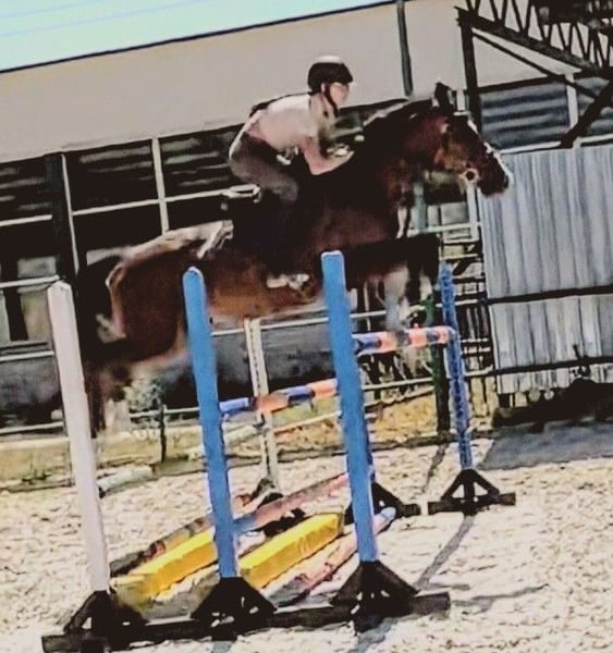 Alle springliefhebbers opgelet!!! HUGODAR... een Bulgaarse sportpony met uitstekend springvermogen en ruime ervaring op concoursen, evenals actuele klasseringen in de L-klasse, wil graag naar zijn forever home verplaatst worden. Een prachtige, nervensterke vent met een zeer vriendelijke karakter en volledig probleemloos in de dagelijkse omgang. Hij is 9 jaar oud en 1,65 m hoog. Zijn vader is een Engels volbloed en zijn moeder een Duits sportpaard. In de parkour gaat hij goed op de hindernissen af en schat hij de sprong meestal zelfstandig in. Hugodar is amateurvriendelijk in de omgang tijdens het rijden, maar is geen paard voor springbeginners. Hij springt vliegende wissels zonder problemen en springt ze netjes door, zodra hij de juiste hulp krijgt. Zijn gangwerk mag er zeker zijn en hij zou ook in de dressuur een goede indruk maken. Hij gaat goed om met andere paarden. Hij kent de hoefsmid en de dierenarts en heeft geen problemen met beiden. Het in de trailer laden met Hugodar verloopt volledig probleemloos en hij blijft rustig en braaf in de trailer of vrachtwagen staan. Wie op zoek is naar een top springpaard, zal bij hem zeker slagen. Bij interesse graag contact opnemen met telefoonnummer, zodat ik zo snel mogelijk contact met u kan opnemen.