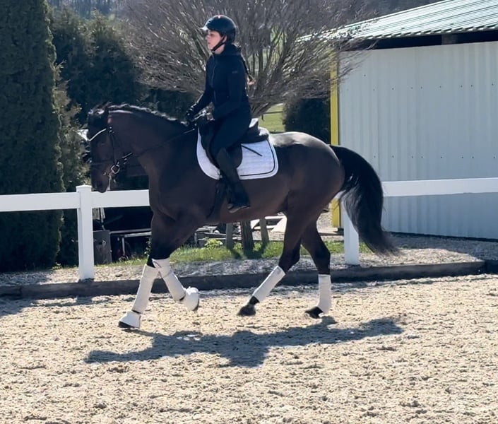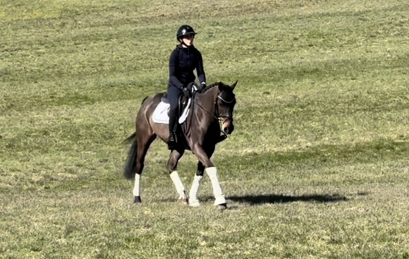 Der 11-jährige „Dragan“ ist ein sehr ruhiges und unbeeindrucktes Pferd. Er ist im besten Alter und hat schon viel Erfahrung und Routine. Der Wallach kennt Führmaschine, Sandpaddock und Koppel, sowohl alleine als auch in der Gruppe. Im Umgang ist er ausnahmslos brav, steht immer still, beim putzen, satteln, waschen, Schmied - alles kein Problem und ist auch von Leuten ohne Pferdeerfahrung einfach zu händeln. Beim Reiten überzeugt er mit seiner gelassenen und vor allem ruhigen Art. Er geht schön in Anlehnung und hat nicht so viel Blut, das ermöglicht es ihm, auch mit schwächeren Reiter und wackligeren Hilfen gut umzugehen. Er kann auch mit einem Ausbinder geritten werden. Dragan kennt die Arbeit an der Longe und ist auch dabei absolut unkompliziert. Ein weiterer schätzenswerter Bonus ist seine absolute Zuverlässigkeit im Gelände. Sowohl alleine als auch in der Gruppe geht er brav vom Hof und zeigt sich im Gelände stets zuverlässig. Der Wallach ist absolut straßensicher und mit ihm steht einem gelassenen und ruhigen Ausritt nichts im Weg. (Siehe Video) UNBEDINGT GANZES VIDEO ANSCHAUEN, GELÄNDE, SPRINGEN IST AUCH ZU SEHEN. • Stockmaß-Angaben sind geschätzt und nicht exakt nachgemessen • Alle Beschreibungen sind subjektive Einschätzungen des Verkäufers und keine zugesicherten Eigenschaften • Aktuelle Röntgenbilder ohne Befund, sowie ein einwandfreier klinischer TÜV liegen vor. Bei Interesse gerne telefonisch melden unter 015140555583. Sie können sich auch am Wochenende oder an Feiertagen bei uns melden.