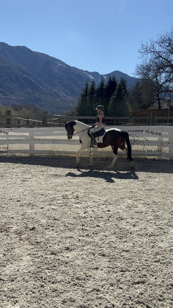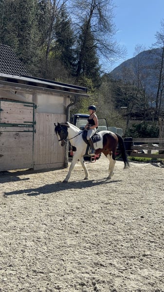 Ausdrucksstarker Schecke (12 Jahre) besticht durch seine besondere Farbgebung und sein freundliches Wesen. Er ist lieb im Umgang, sowohl am Boden als auch unter dem Reiter. Das Pferd ist erfahren im Gelände, kennt Ausritte alleine sowie in der Gruppe und zeigt sich dabei stets zuverlässig und ausgeglichen. Ein toller Partner für Freizeit und entspannte Ausritte.