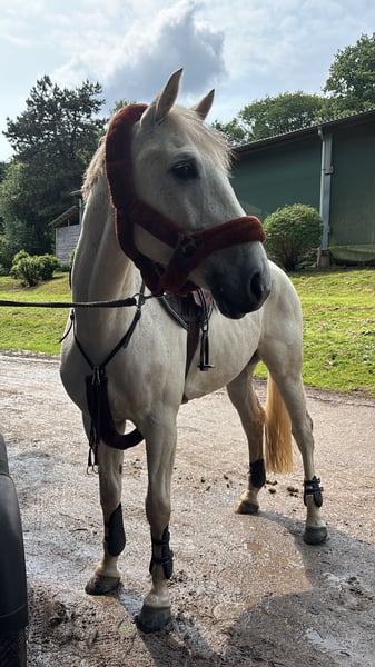 Schweren Herzens habe ich mich dazu entschieden meinen Wallach in beste Hände abzugeben. Er hat mich in den Jahren von der ersten Springpferde A bis zur Klasse M** getragen. Nun soll er sein können weitergeben dürfen. Wünschenswert wäre jemand, der Spaß an einem Allrounder hat oder als Lehrmeister für den Einstieg in den Springsport. Er ist brav im Umgang, keine Unarten. Lässt sich Problemlos verladen, herdenverträglich ( steht in einer gemischten Herde), Schmiedefromm etc. Beim reiten mit genügend Go ausgestattet, daher kein reines Anfängerpferd ! Im Gelände ist er brav und jederzeit Händelbar, dort aber nicht so erfahren und gefördert. Geländespringen kennt er ebenfalls. Aufgrund eines leichten Befundes aus 10/25, weit unter Wert zu verkaufen. Er steht aktuell voll im Training und ist Ende 09/25 noch auf Turnier vorgestellt worden. Nähere Infos gerne telefonisch. Platz vor Preis