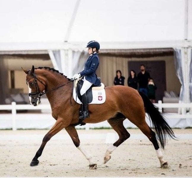Foton ist ein 11-jähriger, erfahrener Wallach in Dressurausbildung, derzeit auf C-Niveau. Bereit für Dressurprüfungen der Klasse Kinder. Er sammelte Erfahrungen bei Wettbewerben: * bei den polnischen Meisterschaften der Jungen Reiter gewann er eine Silbermedaille. * bei den polnischen Meisterschaften der Kinder, wo er zweimal eine Silbermedaille gewann. * zweimalige Teilnahme an den Europameisterschaften in der Kinderkategorie 2022 und 2023. (er belegte den 24. Platz). Beeindruckendes Pferd, ruhig, sicher, kooperativ. Seit diesem Jahr startet er erfolgreich in Prüfungen der Klasse C. Er besitzt einen aktuellen FEI-Pass.