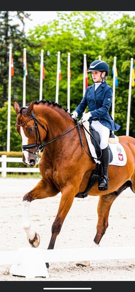 Foton is an 11-year-old experienced gelding in dressage training currently at the C class level. Ready for dressage competitions in the children's category. He gained experience while competing: * in the Polish championships of youngsters he won a silver medal. * in the championships of Poland children's category where he twice won a silver medal. * twice participated in the European Championships in the children's category in 2022 and 2023. ( he took 24th place) Impressive horse, calm, safe, cooperative. This year he began to successfully compete in C class competitions. He has a current FEI passport.