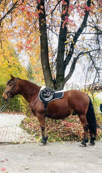 Dieser süße Wallach ist im Gelände eine Lebensversicherung - egal ob groß oder klein, unerschrocken und brav. Auf dem Platz ist er eher der gemütliche Typ - und vermittelt einem Sicherheit. Im Umgang unkompliziert. Auch Kindervolti ist ihm bekannt. Aktuelle AKU vorhanden