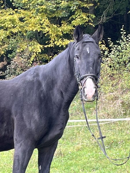 Our 16-year-old, 1.65 m tall gelding has a very gentle temperament. He is easy to groom and lead, and is farrier- and loading-trainable. He has a solid basic education, is familiar with the riding arena, indoor arena, and outdoor terrain. He would be well suited as a school horse. He can be ridden up to E-level dressage and enjoys jumping small fences. He has a valid equine passport, is vaccinated and dewormed. Transport can be arranged! Contact: 0160/1884786