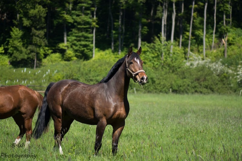 Wallach Westfale, Stm. 167 cm, braun, 18 Jahre alt und wurde bis zur A Klasse ausgebildet. Er ist ein Pferd in Boxenhaltung. Er besitzt einen sehr guten Charakter, d.h. kein Buckeln oder Steigen und verträgt sich gut mit anderen Pferden auf der Weide. All die notwendigen IOmpfungen sind vorhanden, er läuft barfuss, mit dem Schmiede kein Problem. Wir haben ihn bis jetztvielseitig geritten, also Dressur, gerne Springen und Ausritte im Gelände. Täglich kommt er im Winter für ein paar Stunden raus, im Sommer von 10 - 17 Uhr. Gegen Aufpreis gibt es Sattel und Trense dazu.