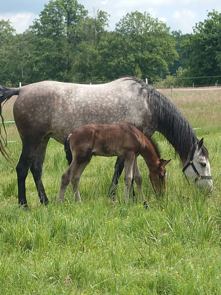 Die letzten drei Bilder sind aktuell. Hallo , wir haben einen kleinen Herzensbrecher abzugeben. Der kleine Mann kam im April zur Welt und hat schon das Herz von allen für sich gewonnen. Seine Mama ist eine Braunschimmel und ca 1,50m groß sein Papa ist ein Barock Pinto Hengst braun Schecke drei farbig und ca 1,58 m groß und hat 50% Friesen Anteil. Beide Eltern sind charakterlich wirklich 1a. Von dem Hengst gibt es schon einige Nachzuchten und diese sind auch alle top Pferde. Der kleine Mann wird später auch ein Schimmel und im barocken Typ stehen. Bei uns wächst er im Herden verband auf und lernt bis zum Auszug das Fohlen Abc. Der kleine Mann ist zum Auszug geimpft. Er hat bis zum Auszug regelmäßig Wurmkuren erhalten und besitzt dann natürlich seinen equidenpass. Der Herzensbrecher wurde kastriert so das man auch da keine sorge mehr haben muss wenn man es nach dem Kauf macht das etwas schief geht. Er hat alles super überstanden. Der kleine geht schon alleine mit spazieren mit mir und ist immer einfach ein Schatz Ein Kauf erfolgt mit schriftlichen Kaufvertrag.