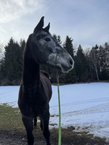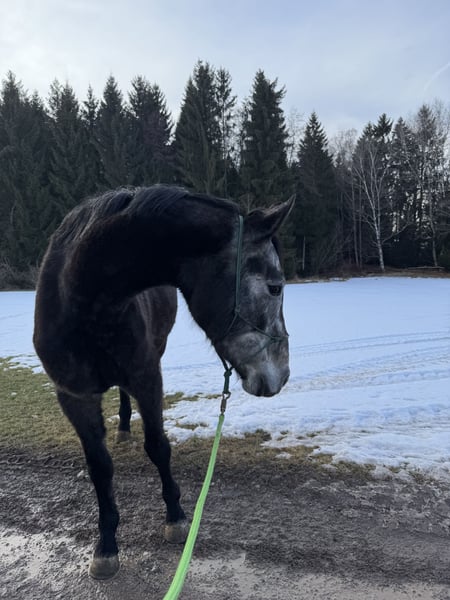 For sale: Young warmblood gelding, born in 2022, with a promising talent for show jumping. The elegant apple-gray is characterized by his friendly nature and an impressive height of 17.3 hh. He is still untrained but is familiar with a bridle, saddle, and rider’s weight, and enjoys walks. He is well-behaved in handling, including with the farrier.
