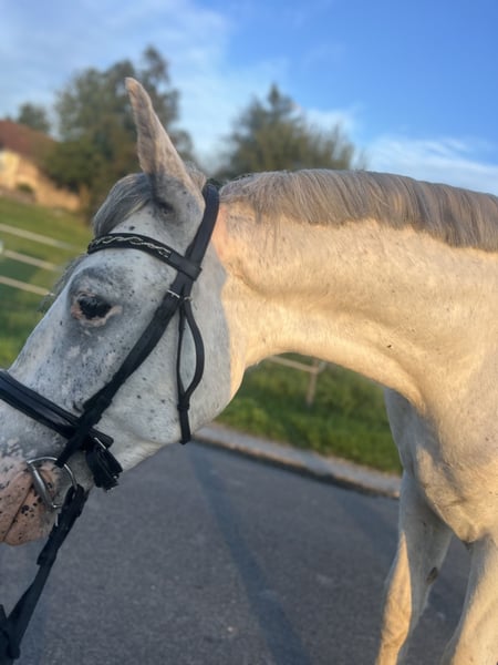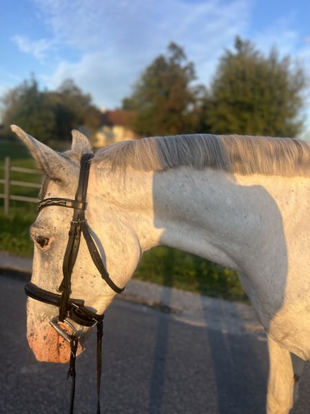 Promising gelding with a calm and gentle character. He is 155cm tall and suitable as a beginner horse. Typical hunter horse for jumping. No health issues, also gets along well in a mixed herd. Easy to care for and can perform all four gaits in the riding arena. Very well-behaved with the farrier and during transport. Riding out alone is no problem for him. For further questions, feel free to get in touch.