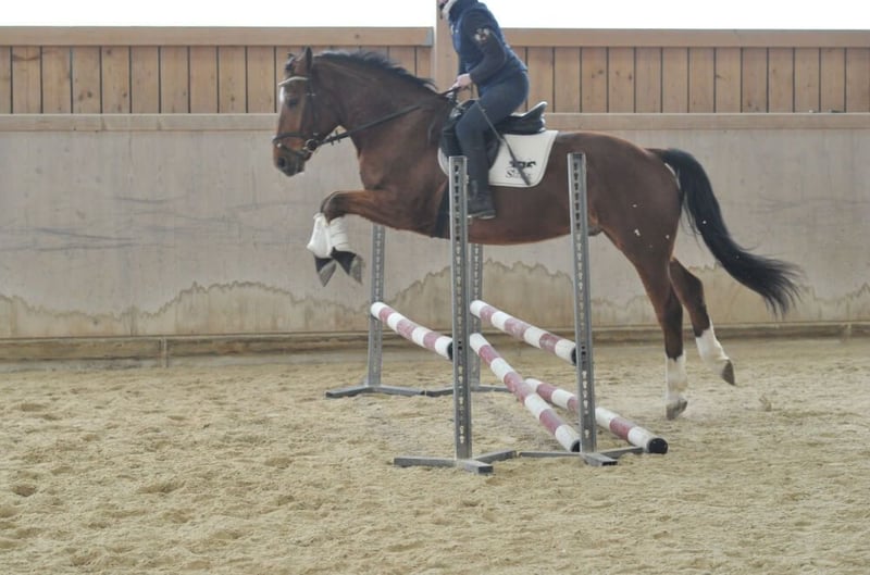 Dieser hübsche, 5-jährige Wallach vom bekannten Vererber Acorado, Vater Aromats, überzeugt mit drei guten GGA und sehr viel Talent am Sprung sowie toller Einstellung. Äußerst bequem zu sitzen vermittelt er ein wunderbares Reitgefühl. Er kennt das Training auf den Äußenplätzen sowie in der Halle. Dressurmäßig auf E und A-Niveau ausgebildet eignet er sich auch für unerfahrene Reiter, durch seine Größe auch für Damen und Junioren.
