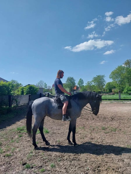 I am offering a young 4‑year‑old Nonius gelding for sale. He has a very interesting colour – grey with a black head in summer, and black in winter. A strong, powerful type with light movement, built in a square frame. Height at the withers: 165 cm, with the potential to grow a little more due to his age. He is excellent to handle: leading, stable work, blanketing, loading into a trailer – all without any issues. Very communicative and friendly towards people. The horse is in excellent health. Regular hoof trimming and dental care have been carried out. He is backed and has basic training: he accepts the bit, walks and trots under saddle, and is just starting with the canter. He also works reliably on the lunge. He is a hardworking, forward‑going type. Due to his age and level of training, he is not suitable for beginners or children. He needs a gentle, patient and consistent rider. He is used to a half‑year 24/7 pasture regime; during winter he was stabled at night, turned out in a paddock during the day, and blanketed. He has no vices, does not kick or bite, and is easy to handle. The price is €7000 including VAT, with VAT deduction possible.