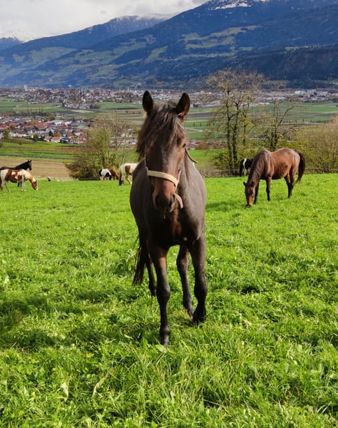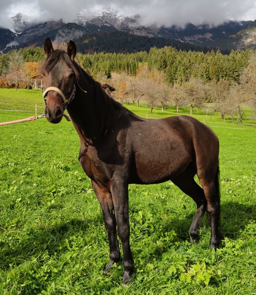 "Primus" est un hongre Pinto de 6 ans, de robe unie. Il est très câlin, suit chaque personne comme un chien de grande taille et adore recevoir des caresses et des gratouilles. Selon son âge, il est encore joueur, mais dans le groupe il occupe plutôt une position basse dans la hiérarchie. Il connaît aussi bien le box que le pâturage en liberté. Malheureusement, il présente un handicap : une pièce osseuse a été détectée dans son articulation du talon gauche (radiographies disponibles). Celle-ci pourrait être retirée chirurgicalement, et après l’opération, il n’y aurait aucune objection à le faire monter en selle. Cependant, comme il est difficile de prévoir comment la charge du cavalier pourrait influencer son état avec cette pièce, il est actuellement uniquement proposé comme cheval de compagnie. Primus a toujours été et est toujours indemne de toute douleur ! Il est halter-trainé et peut donner les pieds, mais en raison de la blessure, il n’a pas été davantage entraîné. Nous souhaitons pour lui une personne qui puisse le travailler au sol, faire de longues balades ou simplement l’aimer. Transport possible. Prix à discuter.