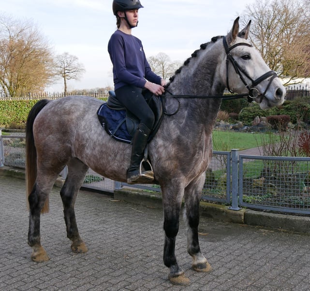 Change is a very well-behaved gelding of medium height. He is a true all-rounder, excelling in the indoor arena, on the outdoor riding surface, and confidently handling the terrain. He also jumps courses and could be used immediately in a riding school. Change is vaccinated, dewormed, and gets along very well with other horses. For more information, please contact us at 0176 62495567.