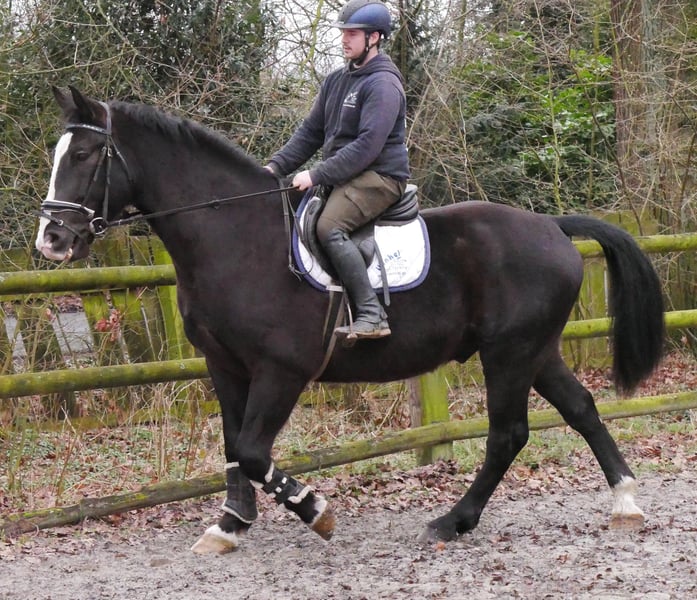 Name: Ekar Alter: 6 Jahre Stockmaß: 160 cm Geschlecht: Wallach Ausbildungsstand: geritten und Ein und zweispännig gefahren Rasse: Schweres Warmblut ( E Pass ohne Abstammung) Zum Verkauf steht dieser sympathische Rapp Wallach Ekar. Er ist ein echter Allrounder: Ausreiten, Halle, Platz und Kutsche Fahren macht er alles brav mit. Ekar ist barhufer, schmiedefromm und im Umgang total brav und menschenbezogen. Er könnte auch in einen Offenstall einziehen. Zur Zeit steht er in einer Box mit täglichem Weidegang, er verträgt sich sowohl mit Wallachen als auch Stuten. Alles weitere unter der Nummer 0176 62495567