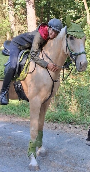 Zu verkaufen steht ein charmanter und Typvoller Palominowallach. Sancho am 29.05.2020 geboren und ca 165cm groß. Er ist nicht Beschlagen. Sancho ist ein sehr verschmuster und Menschenbezogener Wallach, der durch seine Palomino Optik sofort begeistert. Besonders viel Spaß machen ihm Ausritte und Spaziergänge ins Gelände. Bei der Bodenarbeit ist er immer motiviert dabei. Sancho kennt Doppellonge und ausgebundenes longieren. Aufgrund seines Alters ist Sancho kein Kinder oder Anfängerpferd. Er lässt sich lieb von älteren Kindern putzen. Ein Probereiten ist derzeit nicht möglich, da er länger nicht geritten wurde. Sancho wird auch an Händler verkauft. Bei Interesse und Fragen gerne per WhatsApp melden. Videos können geschickt werden. +4915739645591